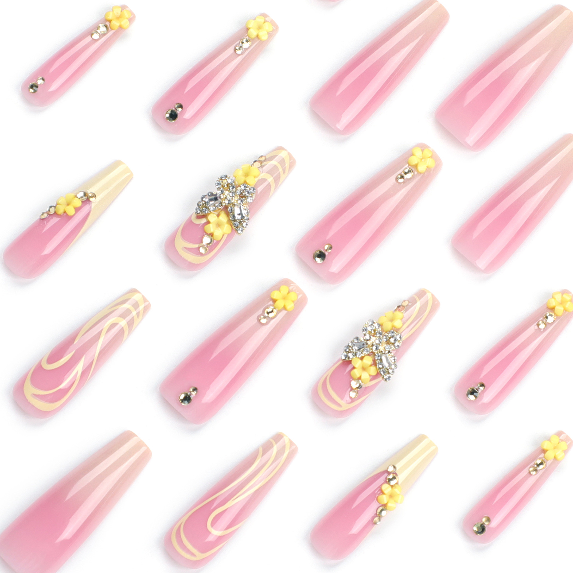 欧美指甲片假指甲片超长款美甲甲片蝴蝶花朵指甲贴片美甲片穿戴甲