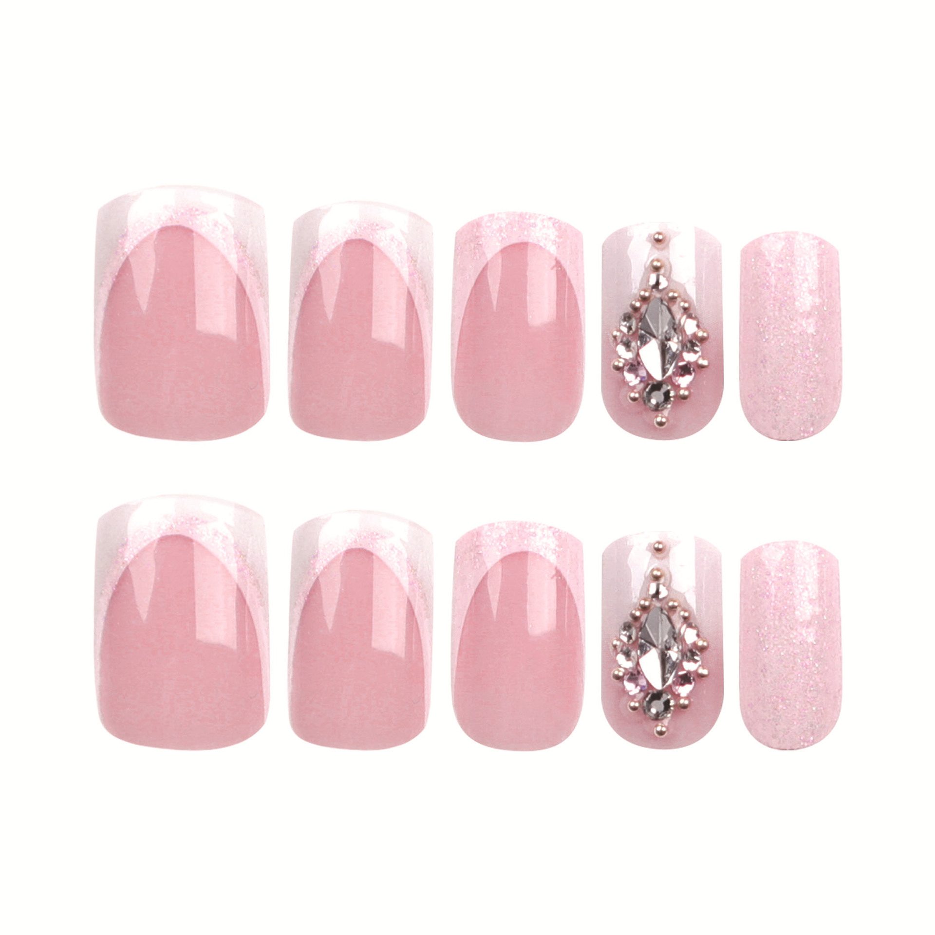 法式粉色闪粉美甲粉白渐变镶钻穿戴甲简约方形甲片press on nail 数量