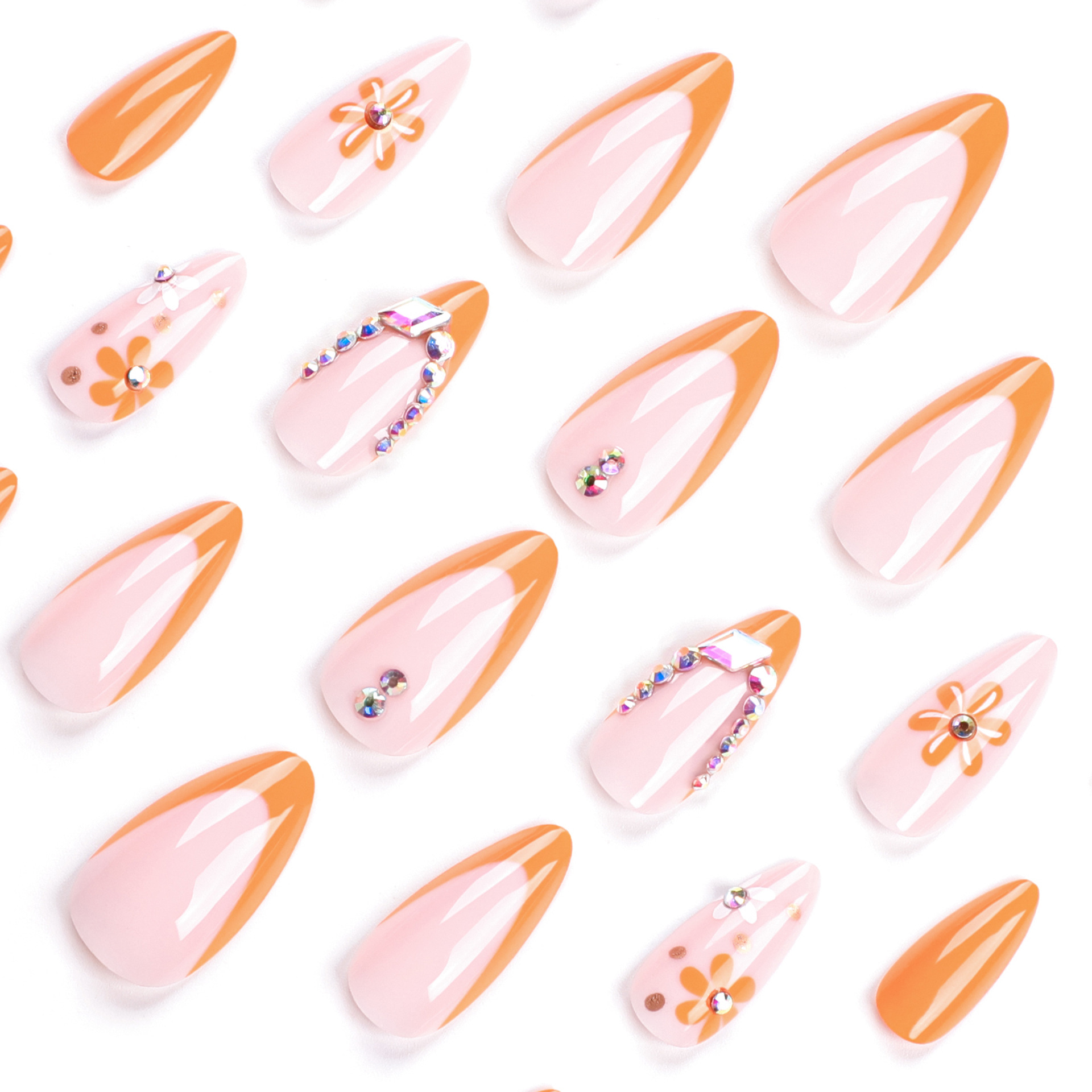 法式纯色橙色美甲暖色花朵显白穿戴甲短款杏仁甲镶钻可拆卸甲片 数量