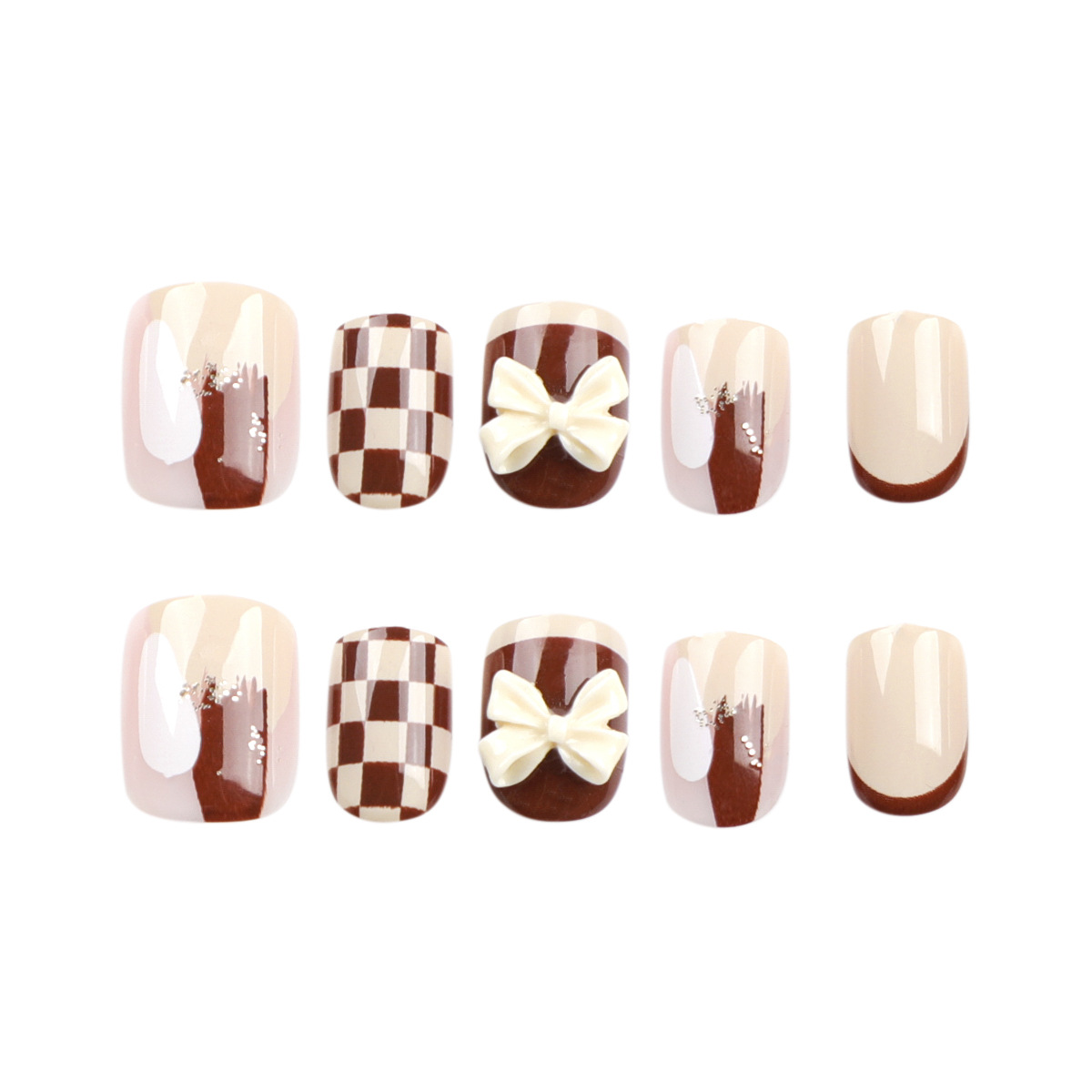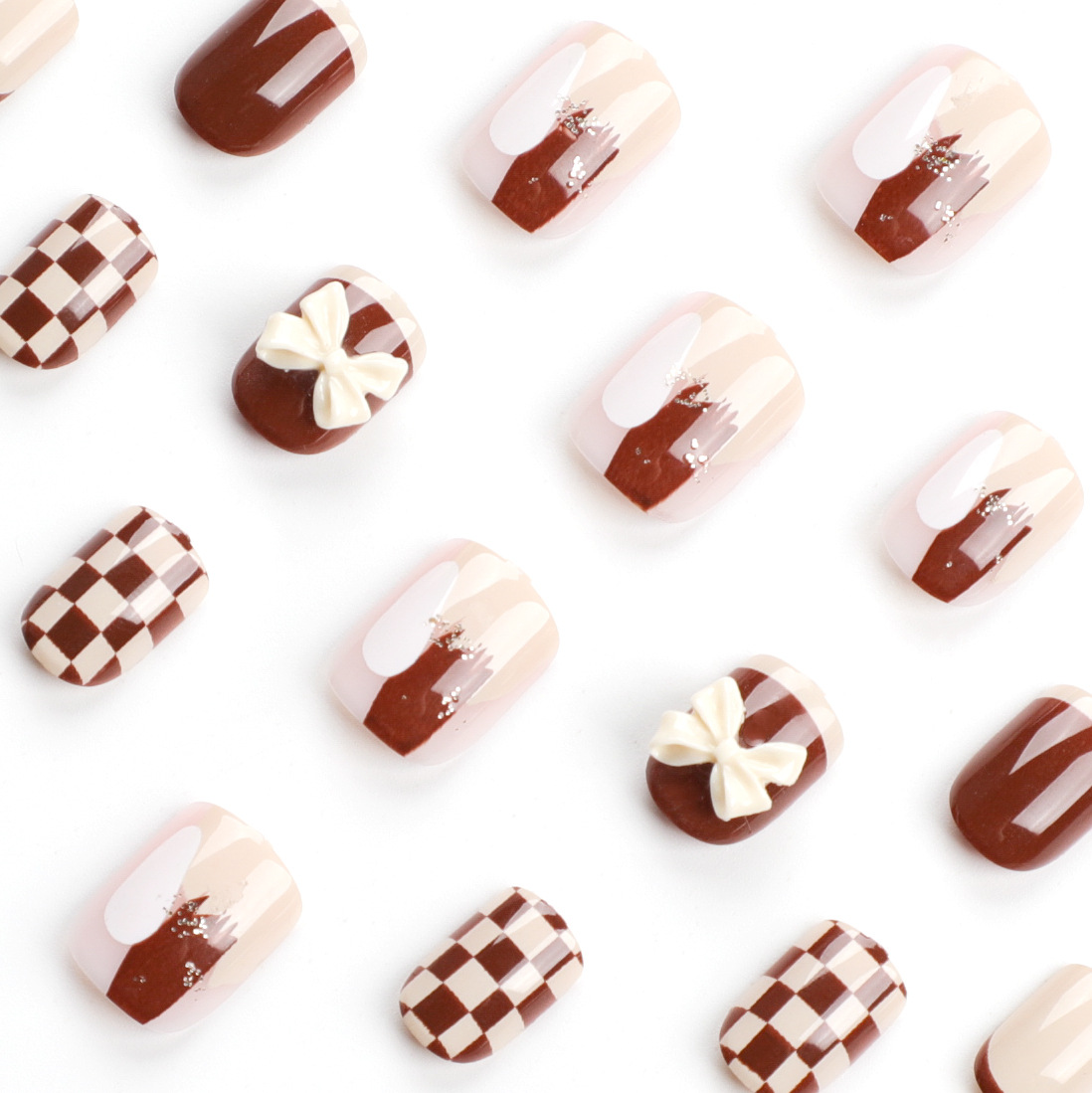 法式美拉德美甲贴片棋盘格蝴蝶结穿戴甲ins小红书假指甲甲片批发法式美拉德美甲贴片棋盘格蝴蝶结穿戴甲ins小红书假指甲甲片批发