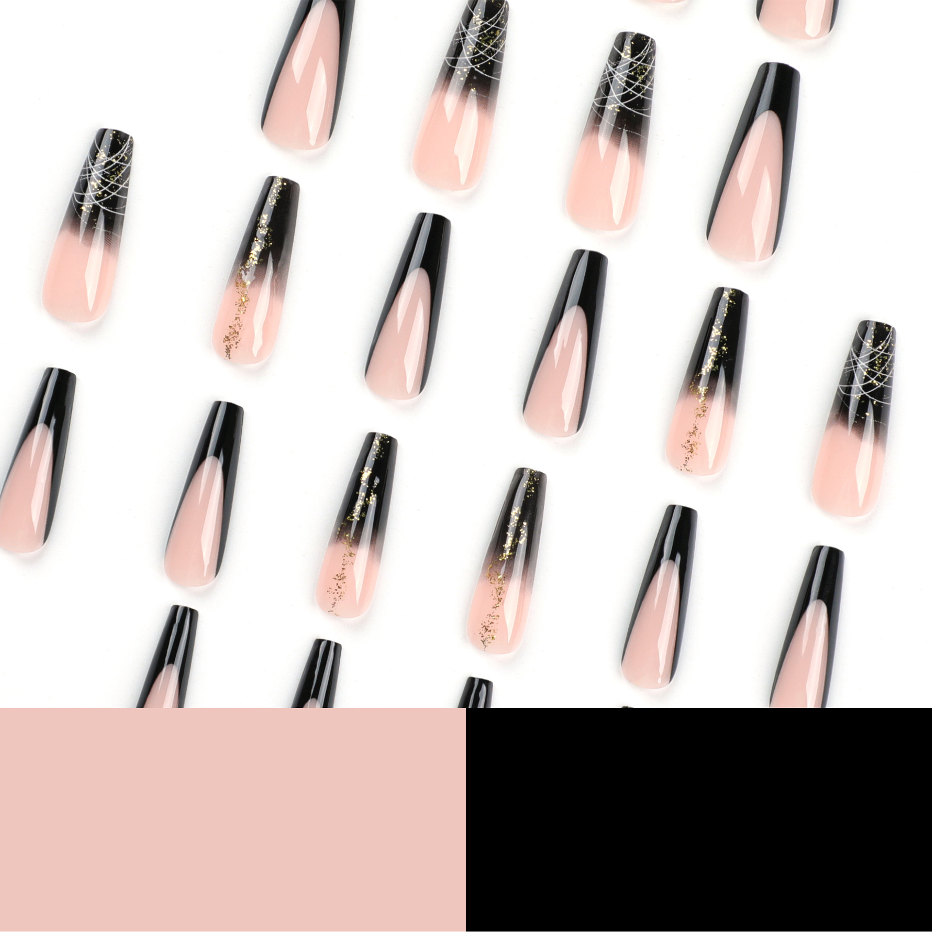 法式裸色黑边穿戴甲金色亮片美甲指甲贴片线条渐变甲片假指甲批发 数量
