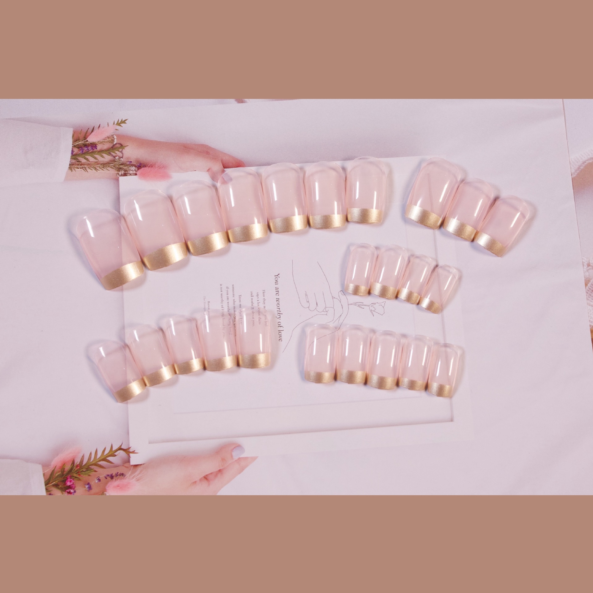 法式金边长款裸色系温柔穿戴甲成品假指甲美甲贴片防水可拆卸甲片 数量
