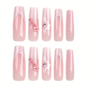 Pink Flower Wearable Nail Nail Art Nail Art Fake Nail Nail Art Finished Removable Nail Art Nail Art Wearable