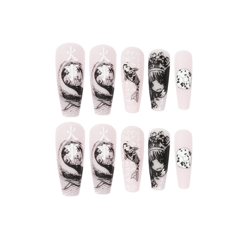 / 海浪川和风涂鸦长芭蕾穿戴甲专用甲片美甲假指甲批发 false nail