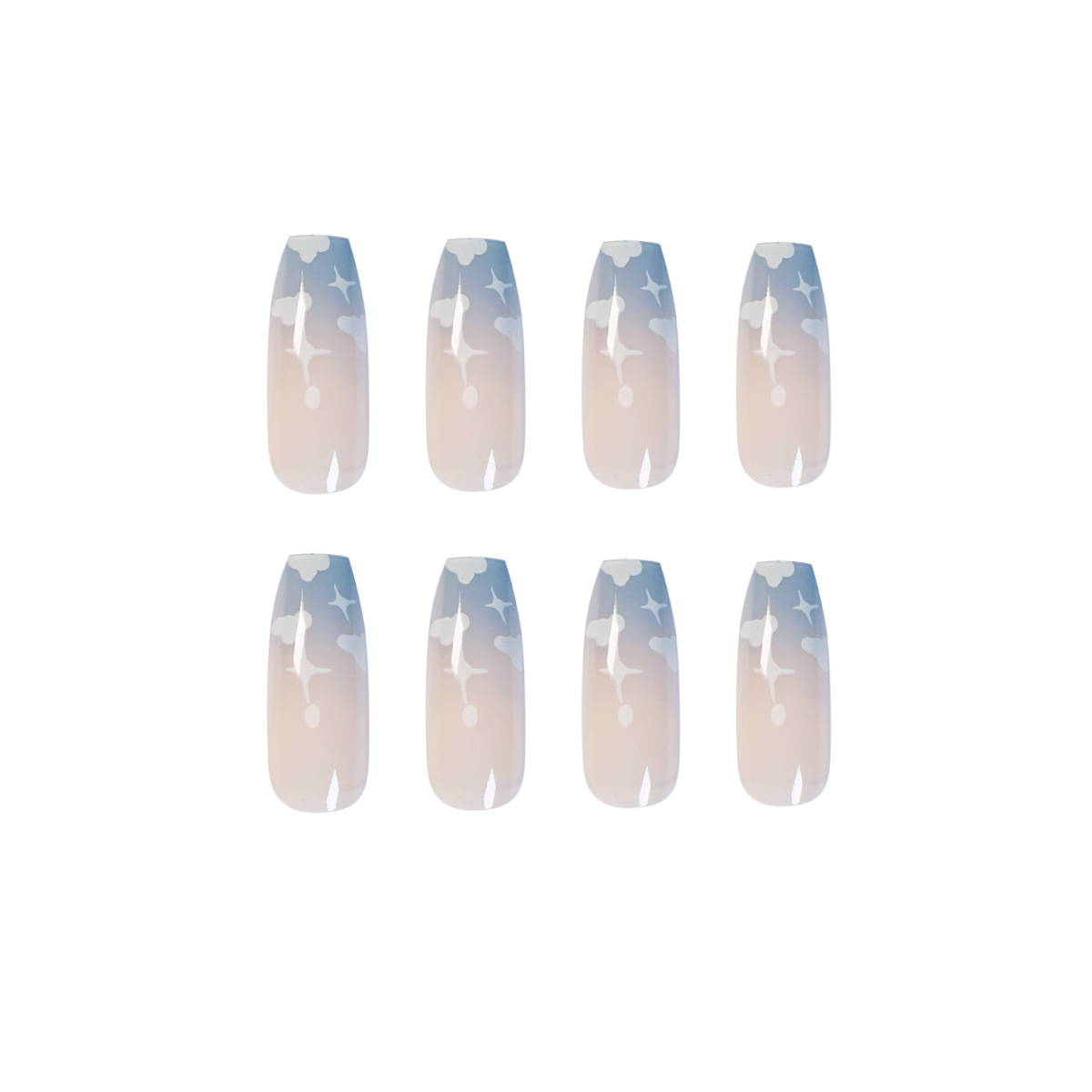 / 灰蓝绵绵云朵穿戴甲成品软甲假指甲美甲贴片指甲贴片可拆卸甲片