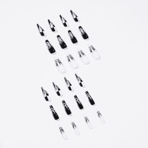 甜酷风穿戴甲欧美假指甲黑白拼色指甲贴片火焰美甲 press on nail 数量