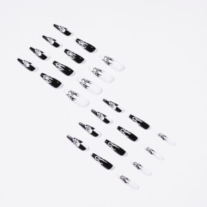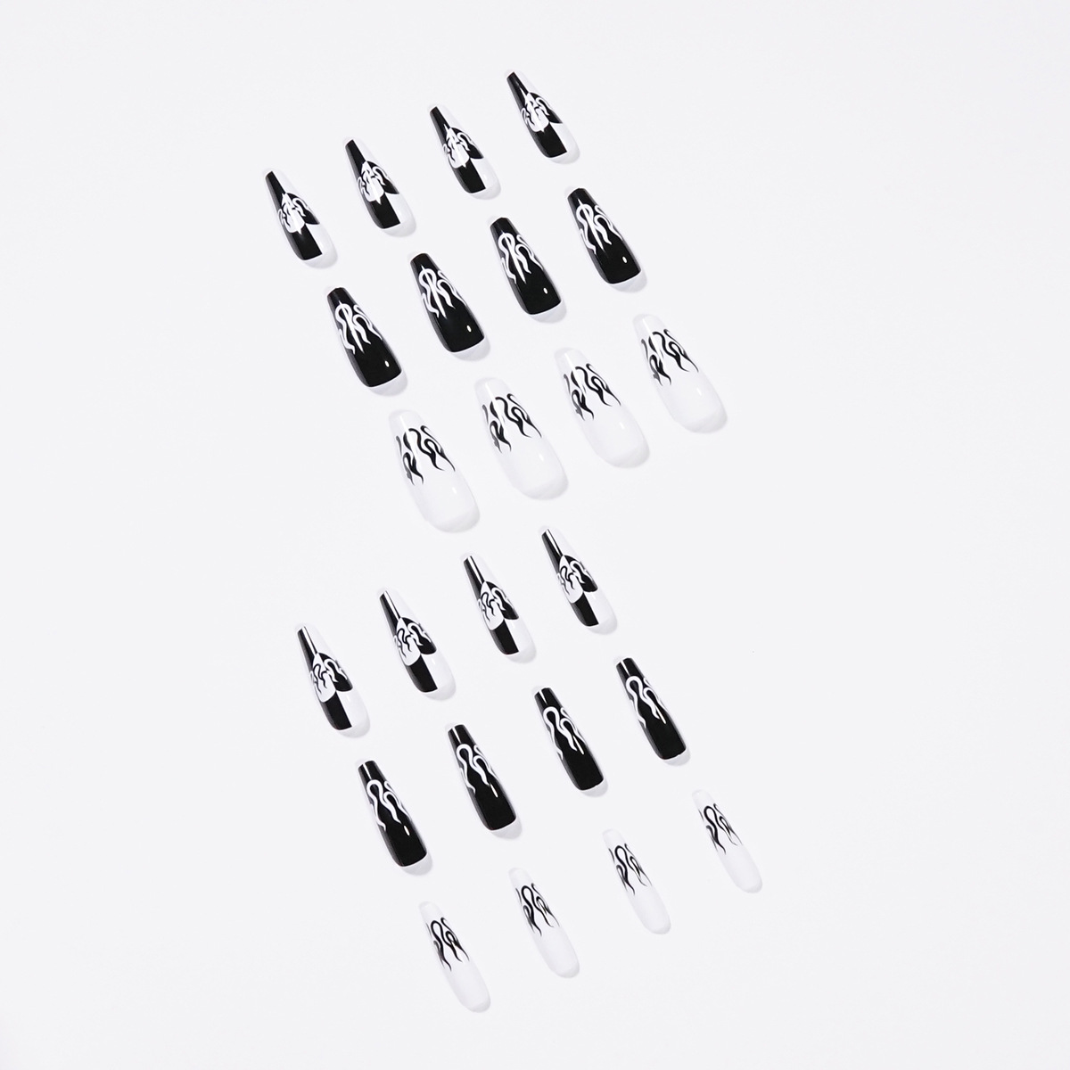 / 甜酷风穿戴甲欧美假指甲黑白拼色指甲贴片火焰美甲 press on nail