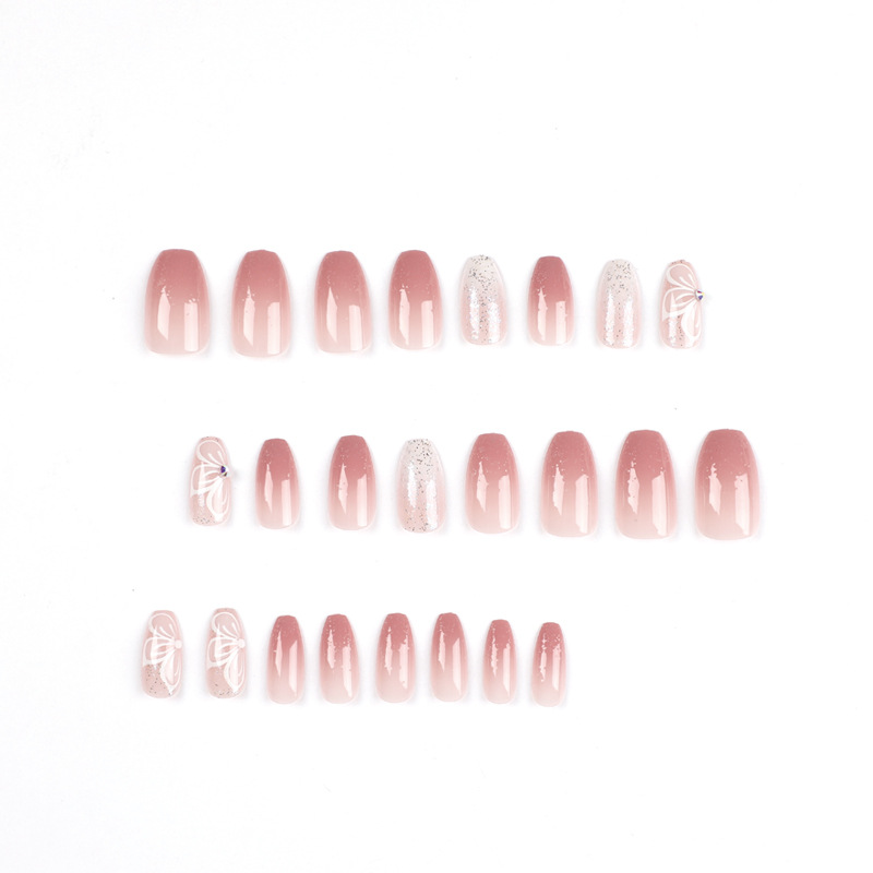 Nail piece finished wholesale pink gradient glitter pure desire wear nail butterfly rhinestone wear nail nail piece wholesale finished$0.74选择选项