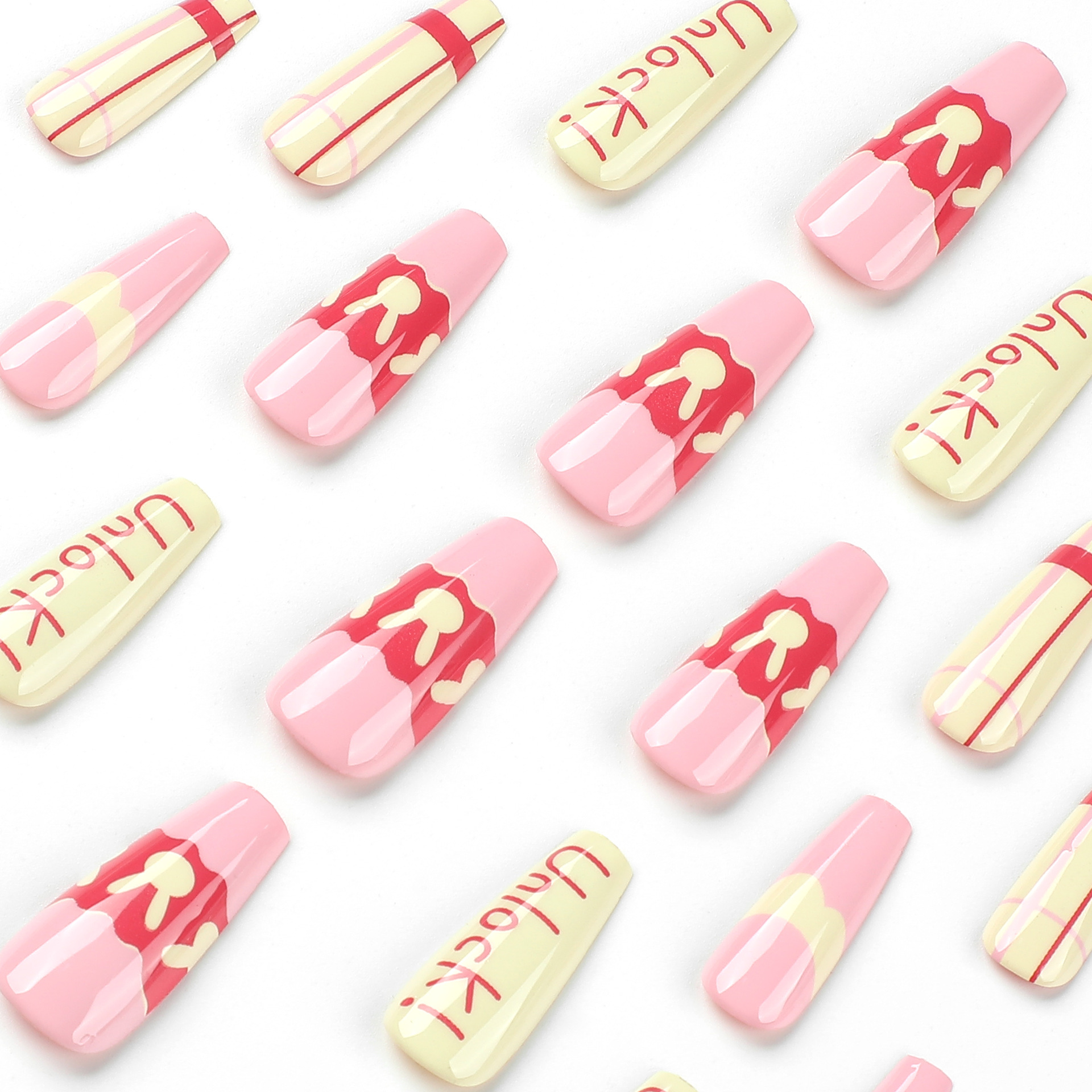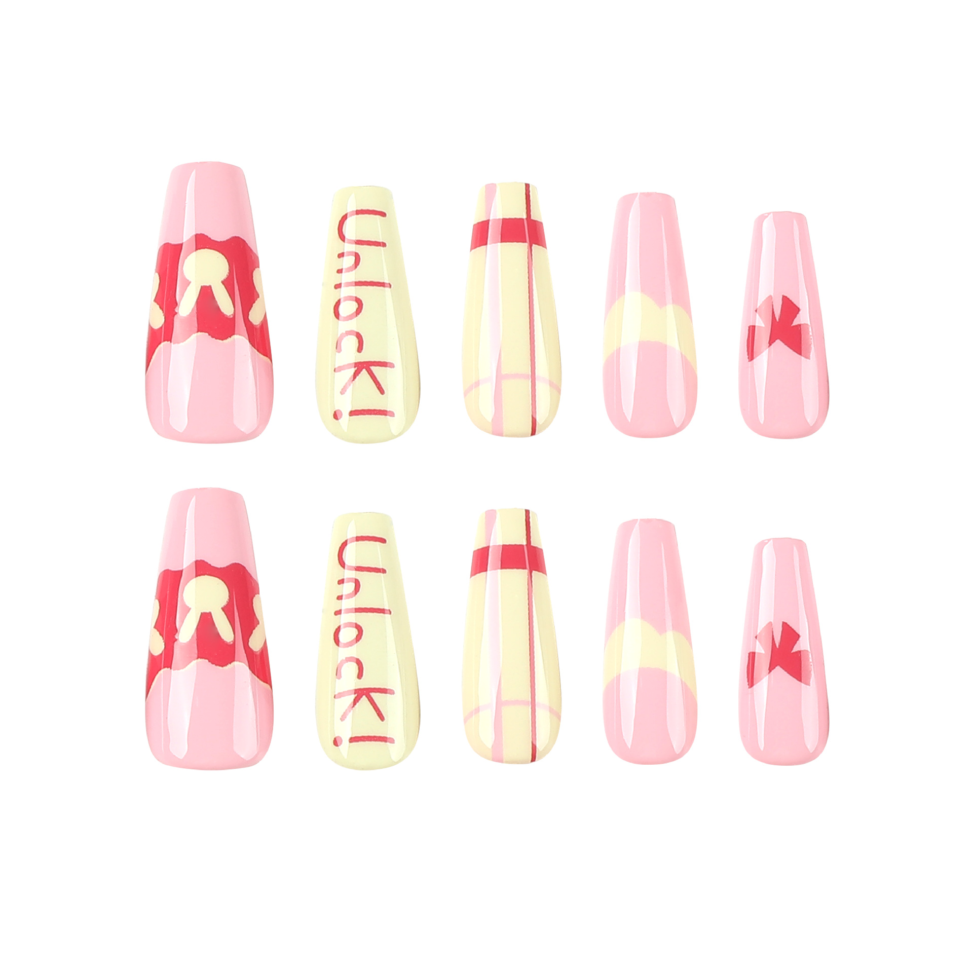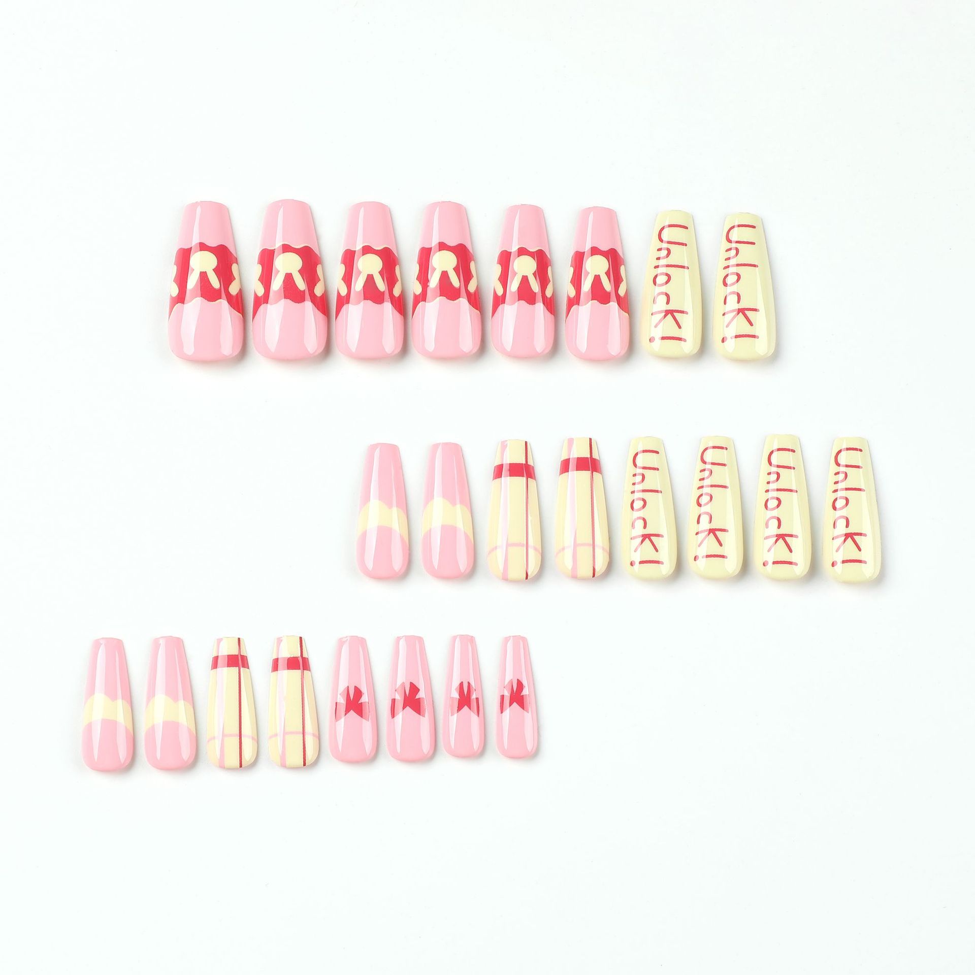 Nail wear nail pink and yellow clashing color manicure pink letters bow yellow cute cartoon rabbit nail clips$0.68选择选项