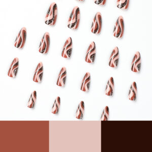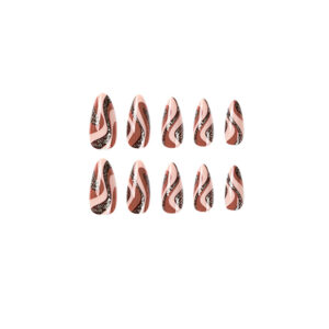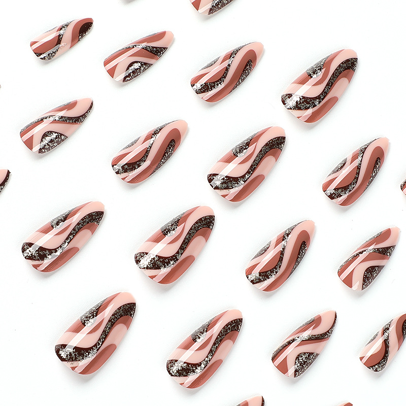 甲片 穿戴甲简约棕色波浪闪粉穿戴甲秋冬可拆卸美甲美甲成品批发 数量