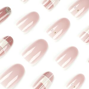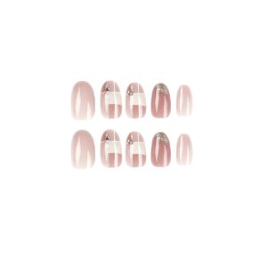 / 穿戴式指甲贴裸粉色美甲片金色闪粉珍珠水钻美甲片成品可拆卸高级
