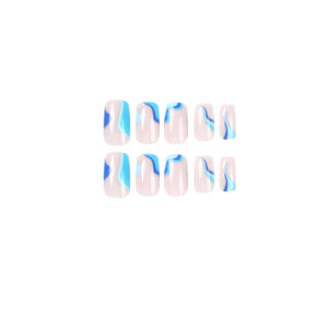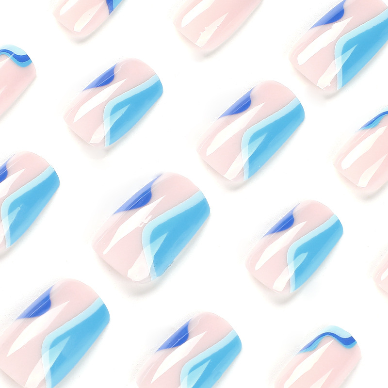 / 穿戴式甲片蓝色拼接波浪指甲贴可拆卸甲片美甲批发press on nails