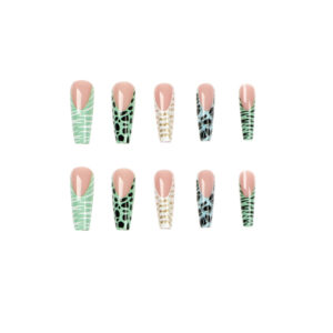 穿戴式美甲批发晕染穿戴甲蓝绿撞色奶牛纹金粉穿戴甲欧美甲片批发