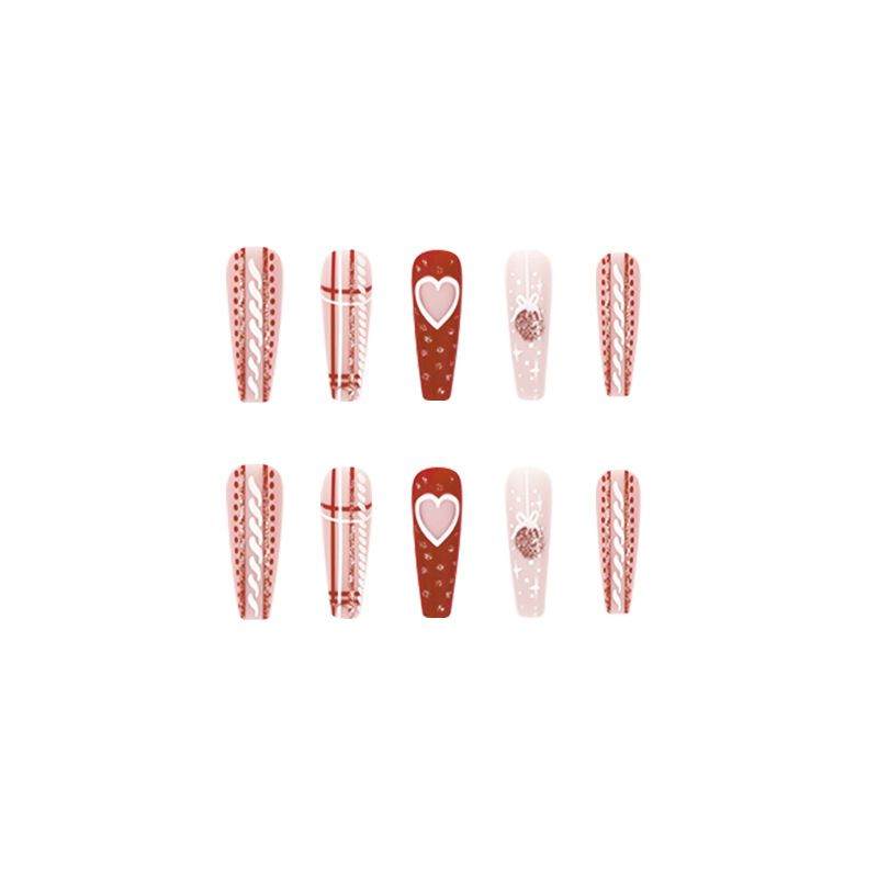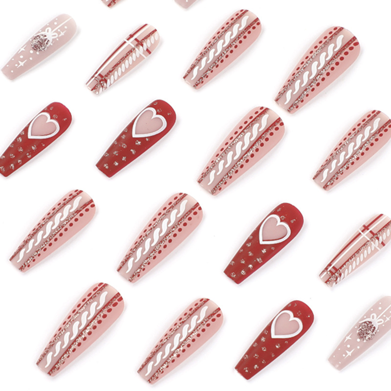 / 穿戴式美甲批发长款芭蕾磨砂圣诞爱心闪粉美甲片成品可拆卸高级