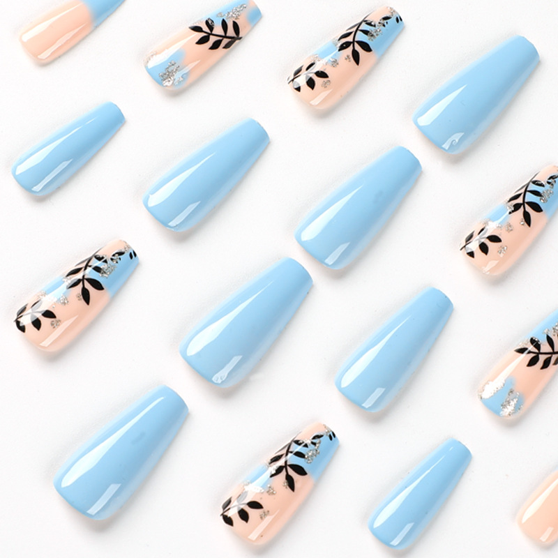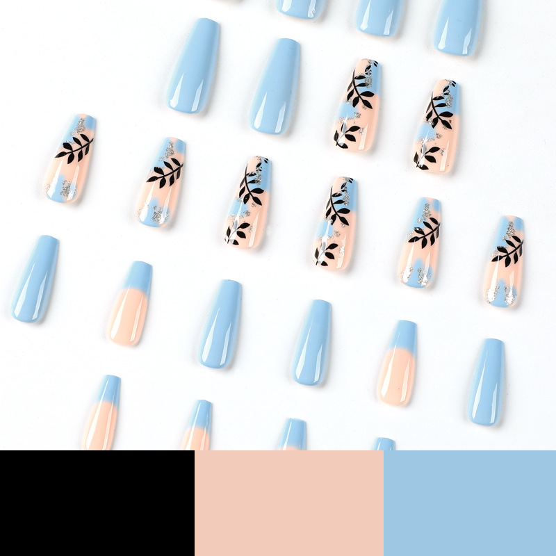 穿戴甲中长款金箔树叶指甲贴片批发可拆卸美甲甲片成品假指甲nail 数量