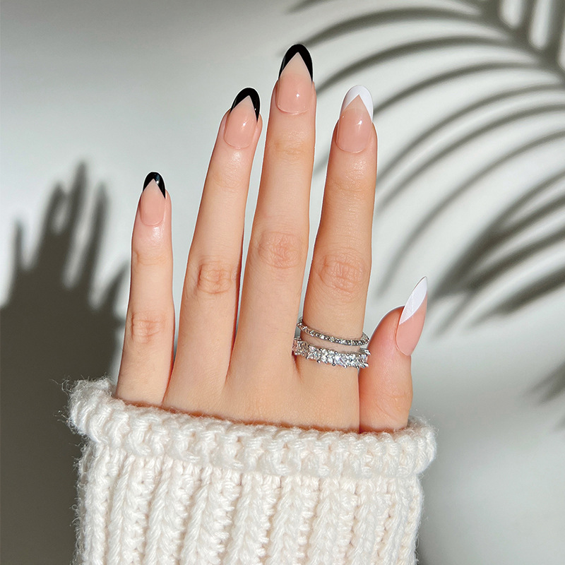 穿戴甲成品批发简约黑白跳色法式穿戴甲美甲甲片批发nail的甲片