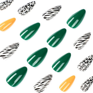 / 穿戴甲成品批发黄绿撞色美甲贴片穿戴甲黑白豹纹穿戴甲甲片批发