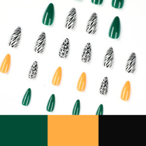 穿戴甲成品批发黄绿撞色美甲贴片穿戴甲黑白豹纹穿戴甲甲片批发