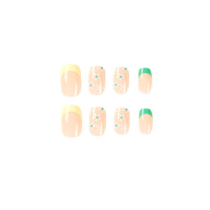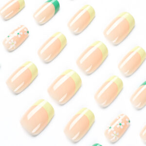 / 穿戴甲成品批发黄绿法式边清新小花美甲贴片穿戴甲批发贴甲片批发