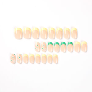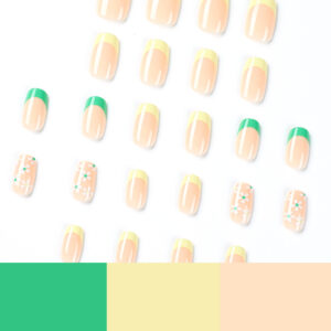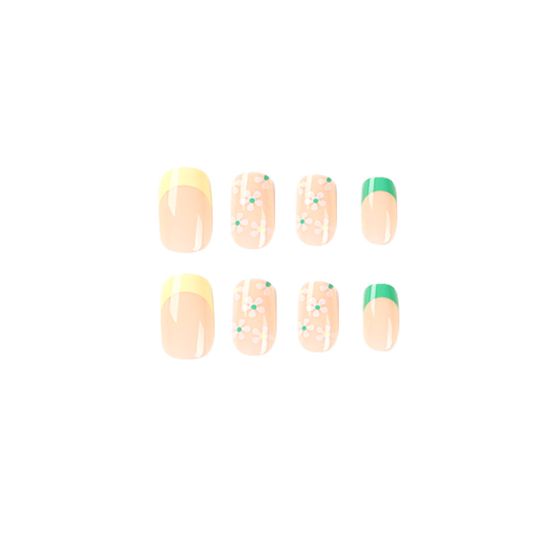 穿戴甲成品批发黄绿法式边清新小花美甲贴片穿戴甲批发贴甲片批发 数量