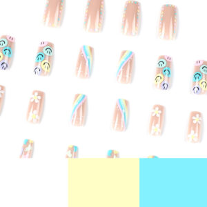 / 穿戴甲成品的甲片五色笑脸云朵白色花朵彩虹色斜边美甲片可拆卸