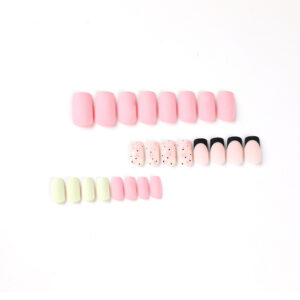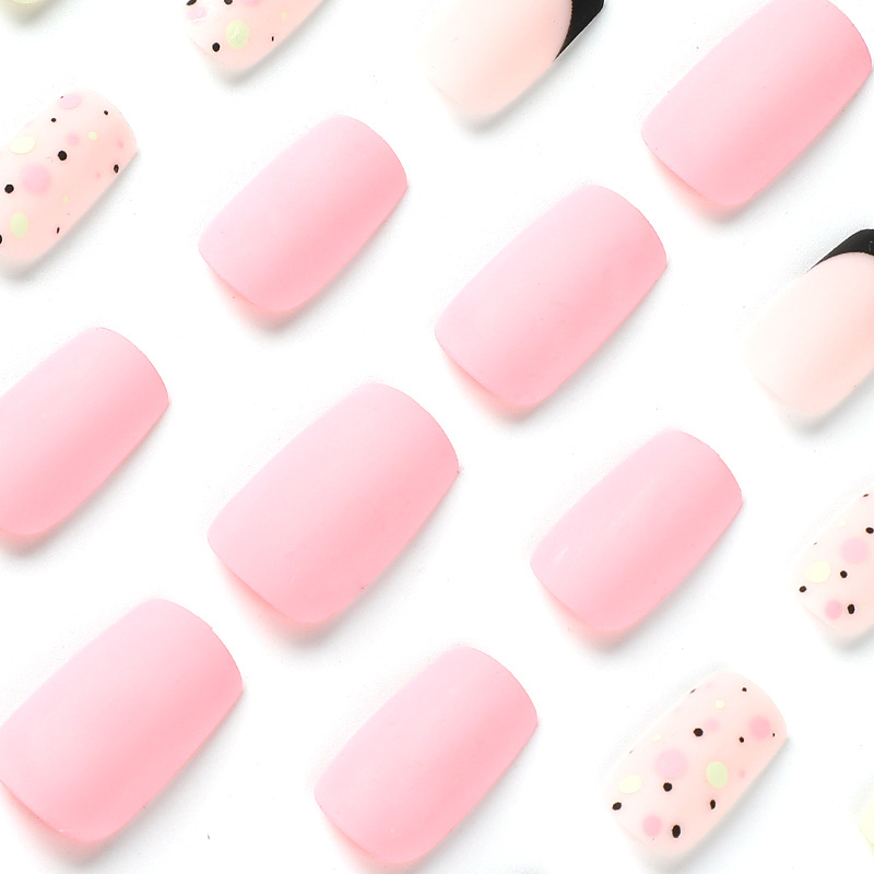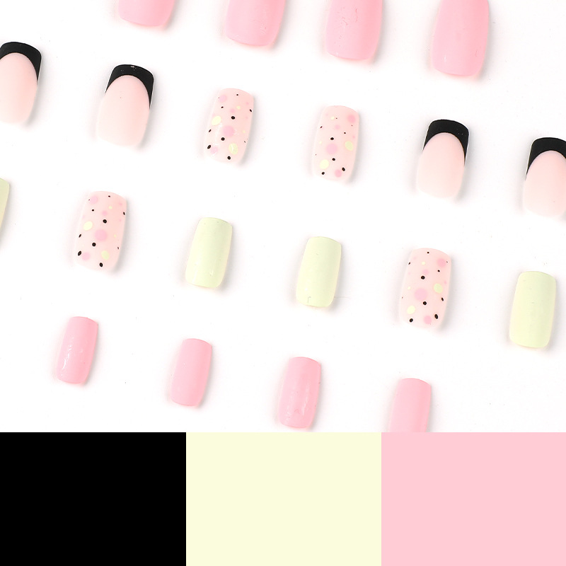 穿戴甲成品磨砂黑色法式美甲穿戴甲清新粉绿波点美甲片批发nails 数量