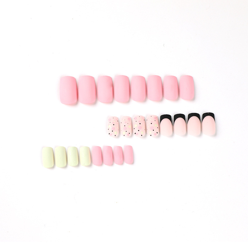 / 穿戴甲成品磨砂黑色法式美甲穿戴甲清新粉绿波点美甲片批发nails