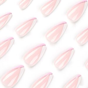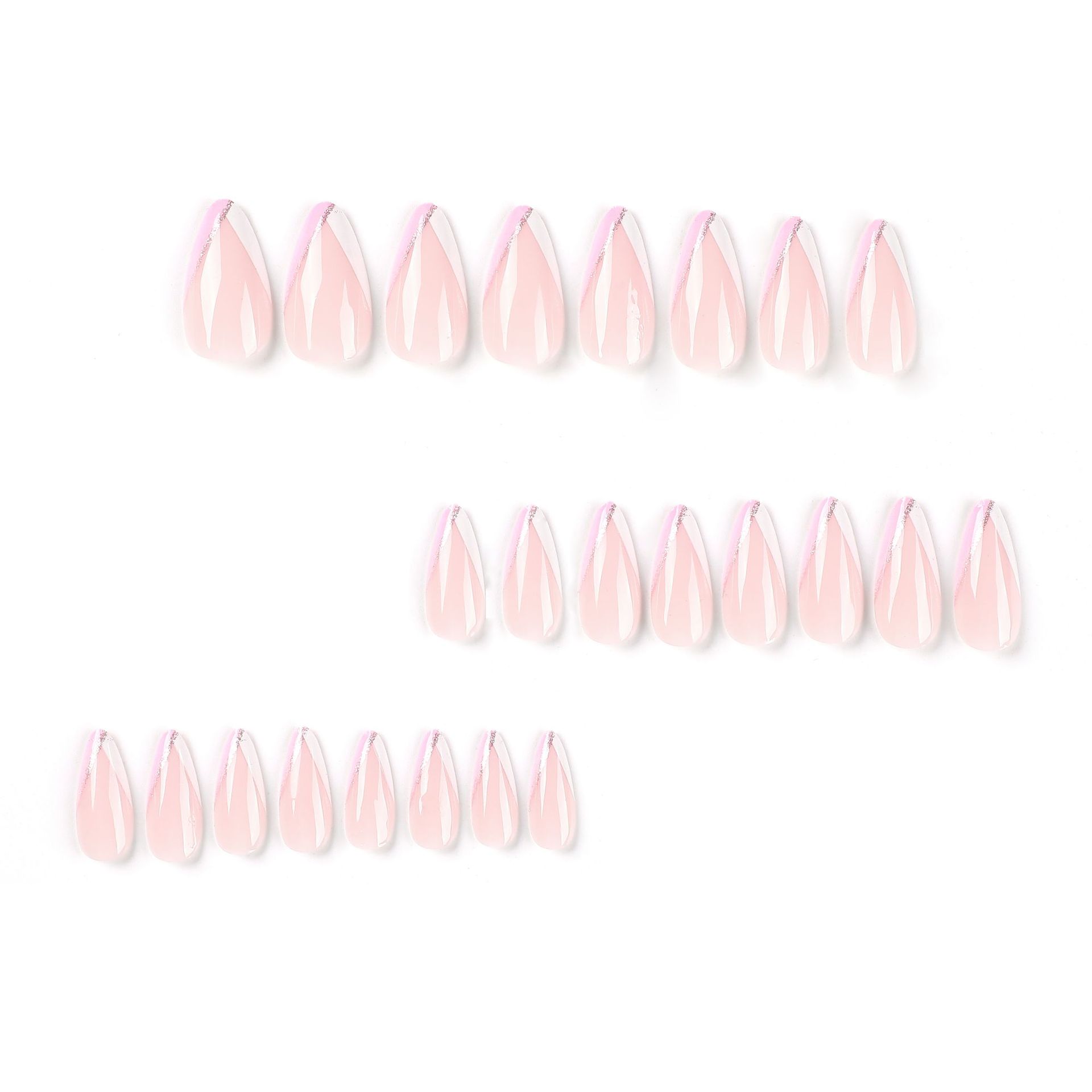 穿戴甲批发白粉拼接斜边双法式闪粉线条美甲片成品可拆卸nails穿戴甲批发白粉拼接斜边双法式闪粉线条美甲片成品可拆卸nails