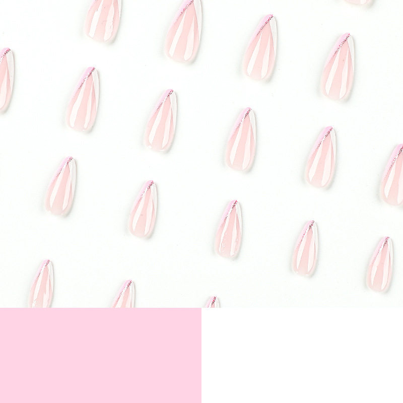 穿戴甲批发白粉拼接斜边双法式闪粉线条美甲片成品可拆卸nails