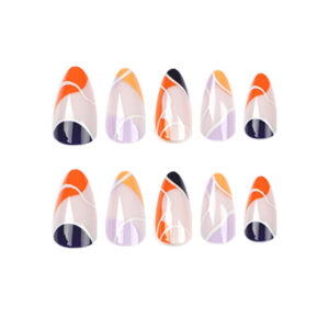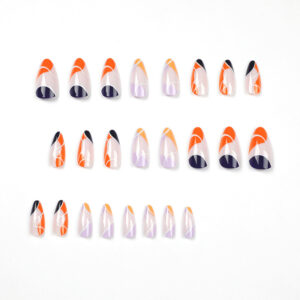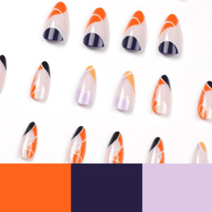 穿戴甲批发简约法式橙黄蓝边假指甲白线条紫色指甲片可拆卸 nails