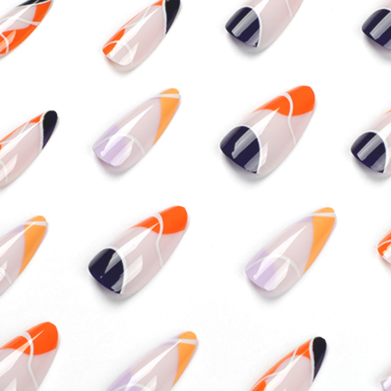 / 穿戴甲批发简约法式橙黄蓝边假指甲白线条紫色指甲片可拆卸 nails