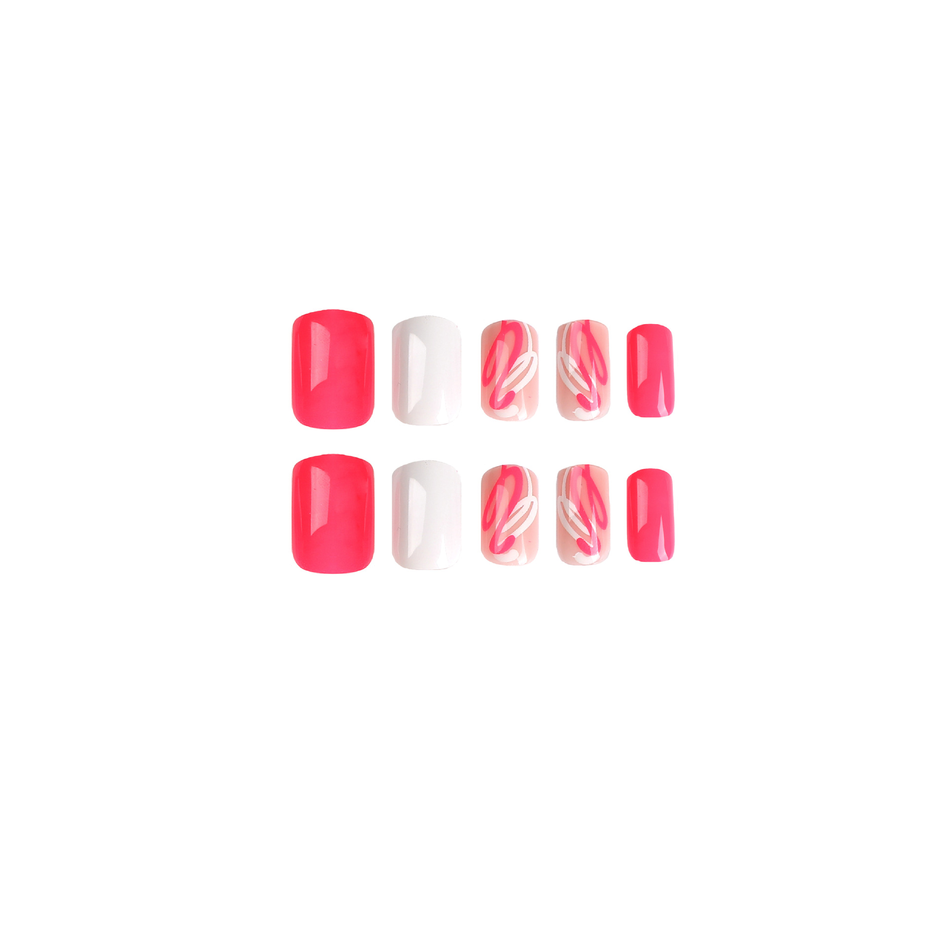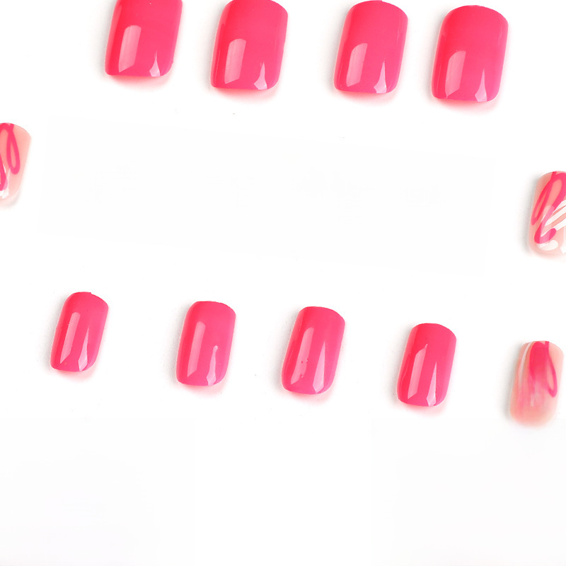 穿戴甲批发粉白美甲片可拆卸粉白波浪线涂鸦穿戴式美甲贴片nails 数量