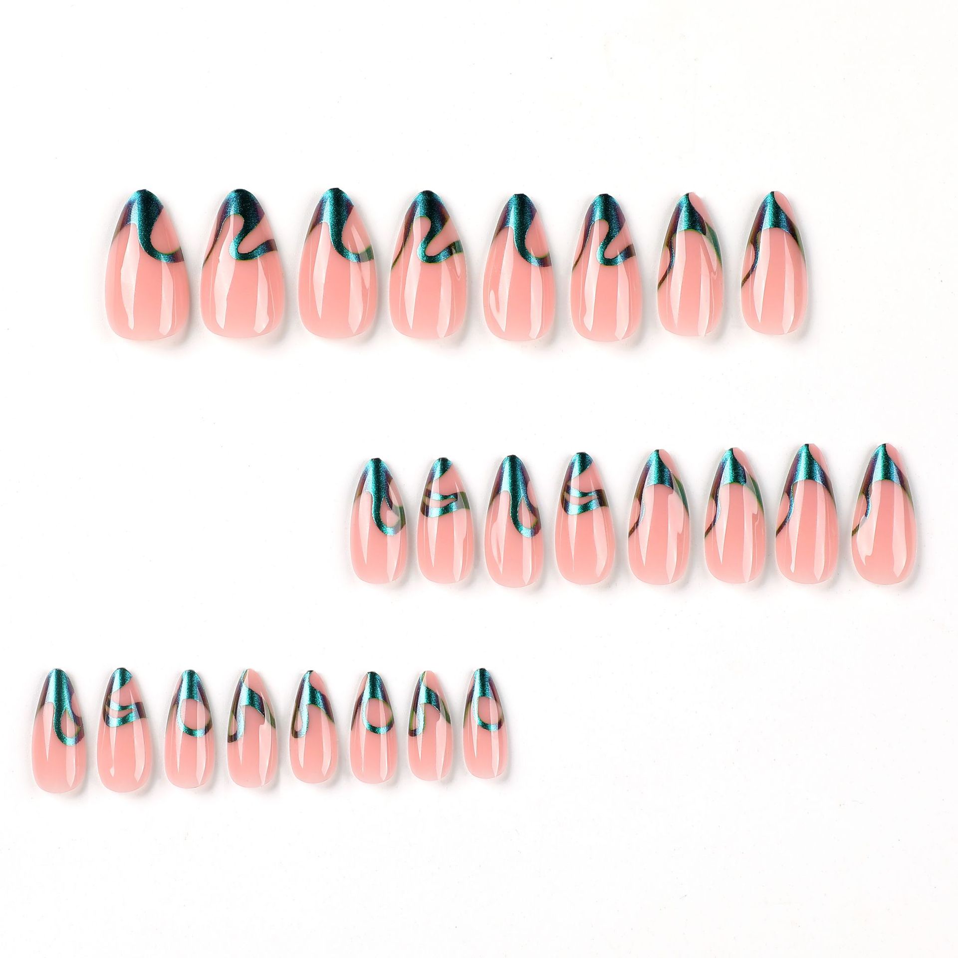 穿戴甲片批发变色龙闪粉波浪法式美甲片美甲成品 press on nails 数量