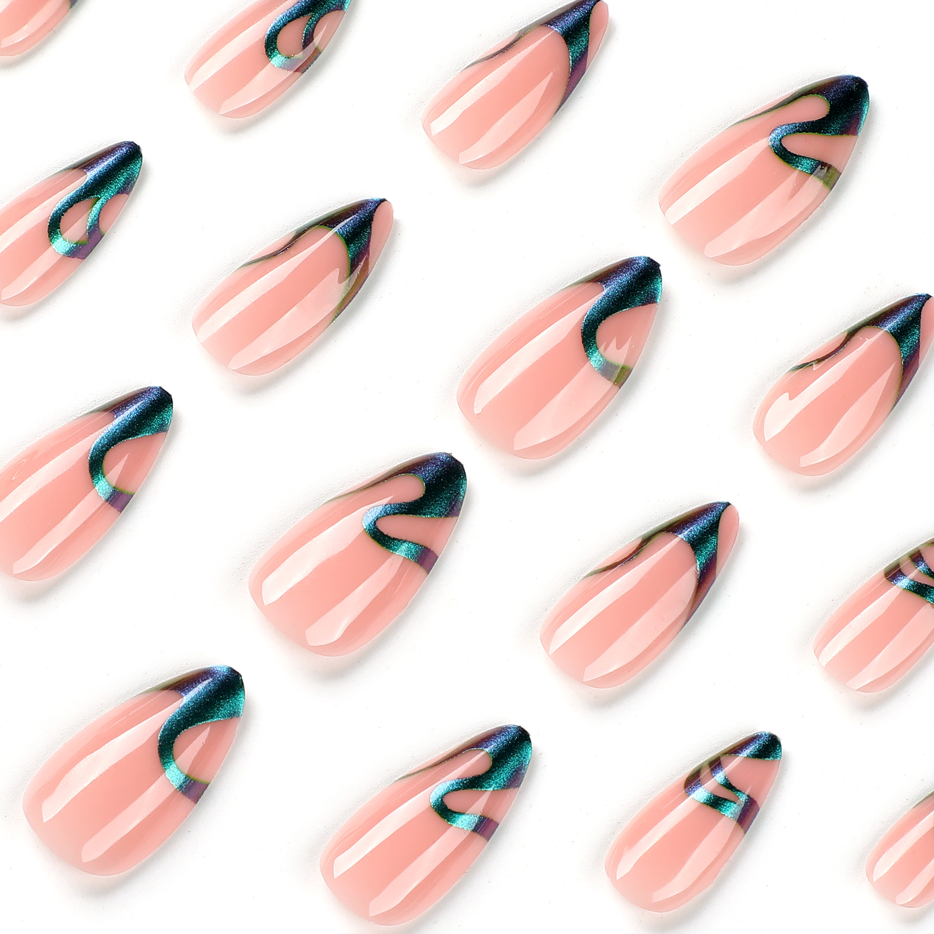 / 穿戴甲片批发变色龙闪粉波浪法式美甲片美甲成品 press on nails