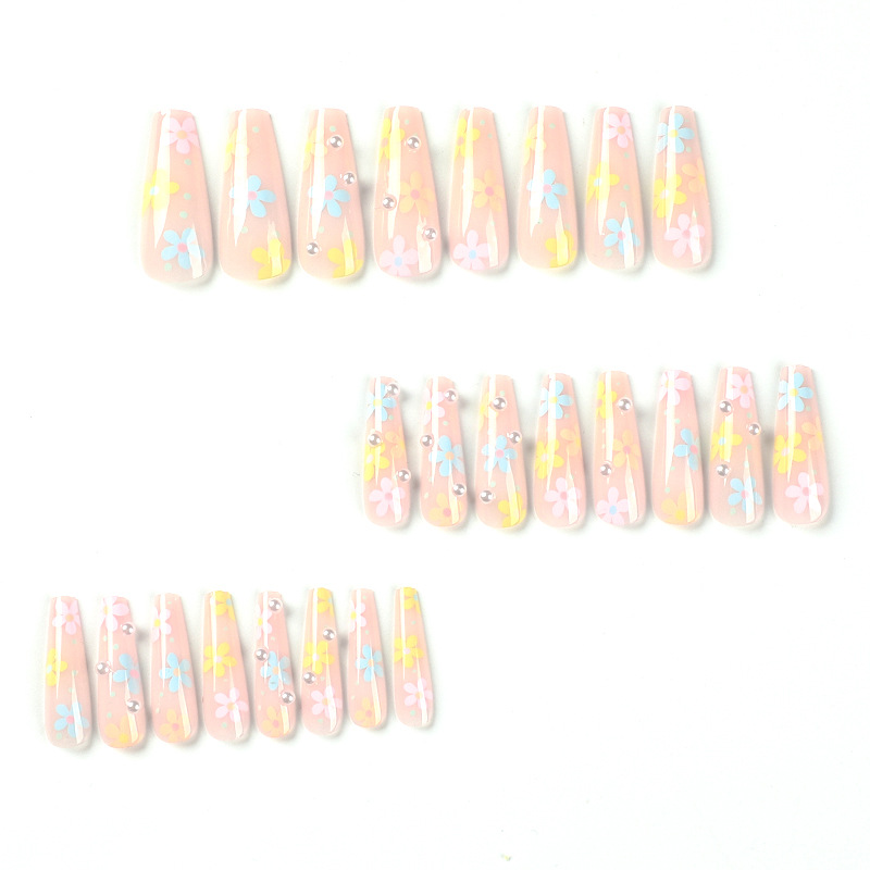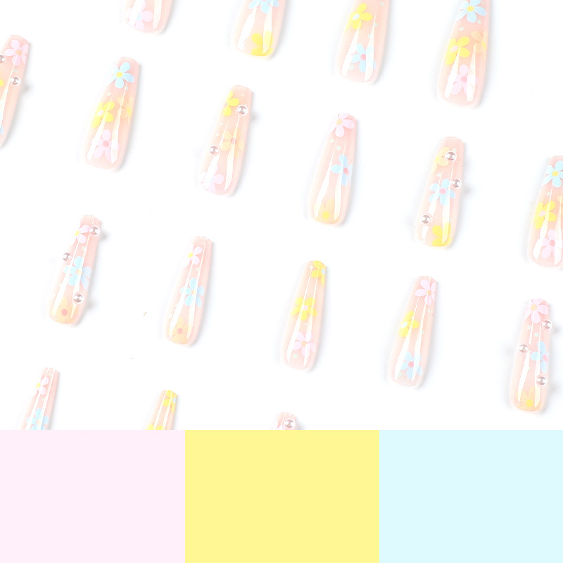 / 穿戴甲甲片多色花朵珍珠穿戴甲指甲贴片成品假指甲press on nails