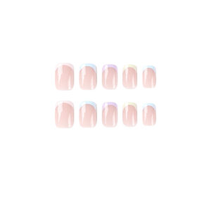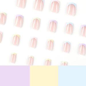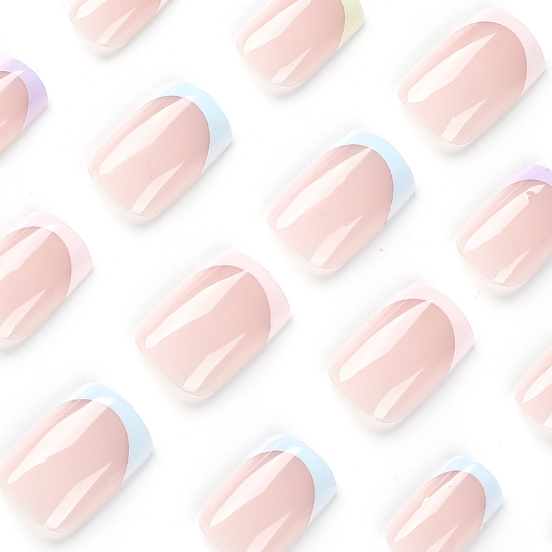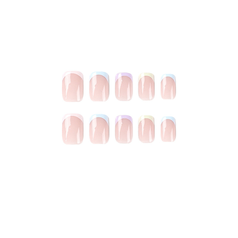 / 穿戴甲甲片批发彩虹五色法式清新美甲穿戴甲甲片批发穿戴美甲高级