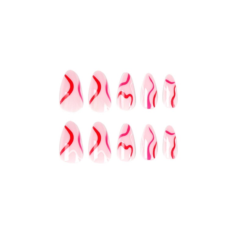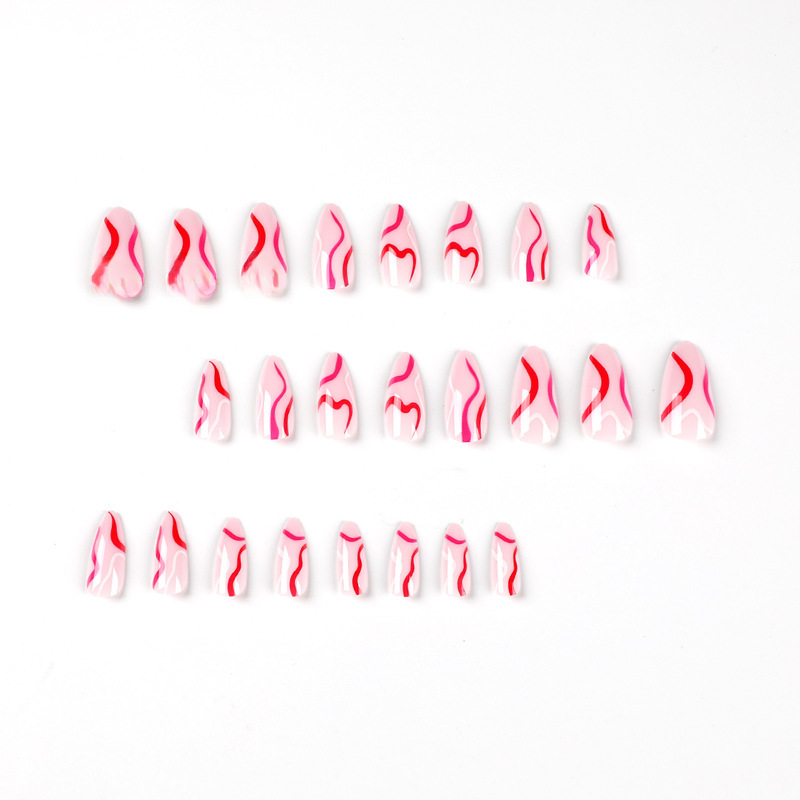 / 穿戴甲甲片批发简约红粉白撞色波浪美甲甲片批发可拆卸美甲nails