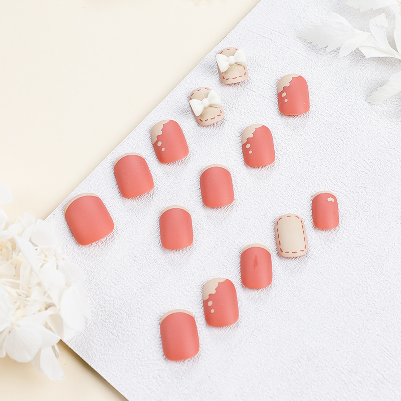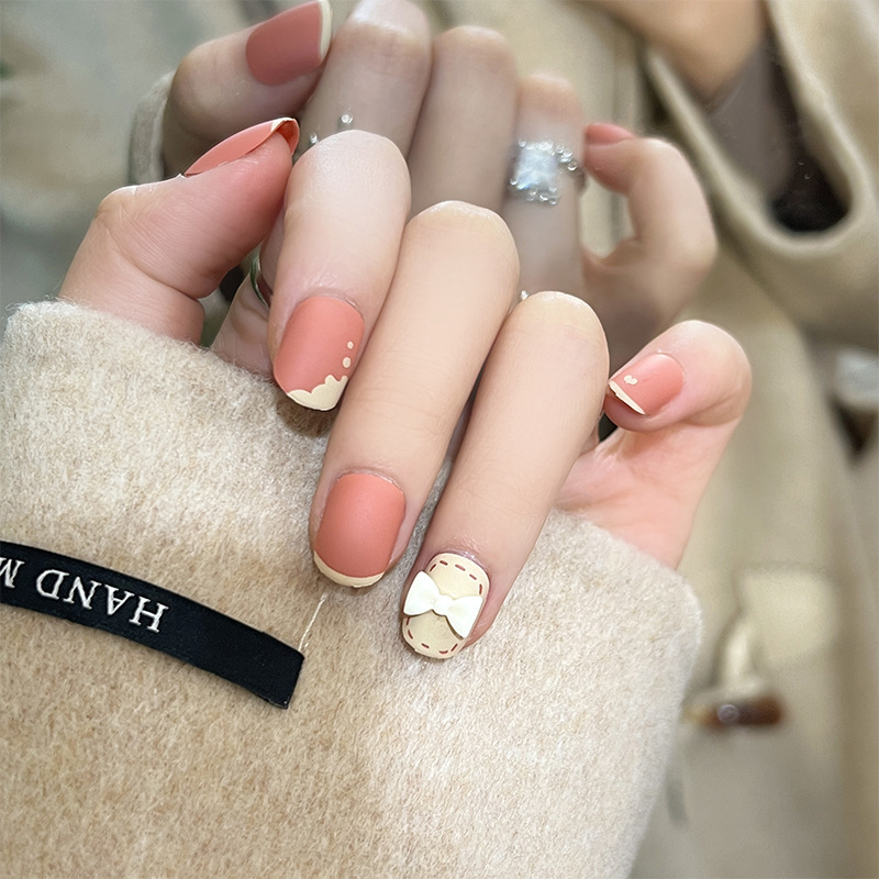 穿戴甲美甲贴片奶油橘显白美甲贴片蝴蝶结指甲贴片穿戴美甲批发 数量