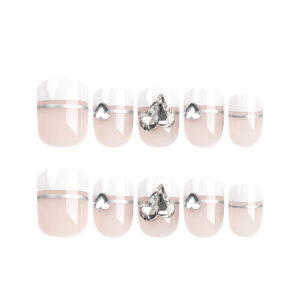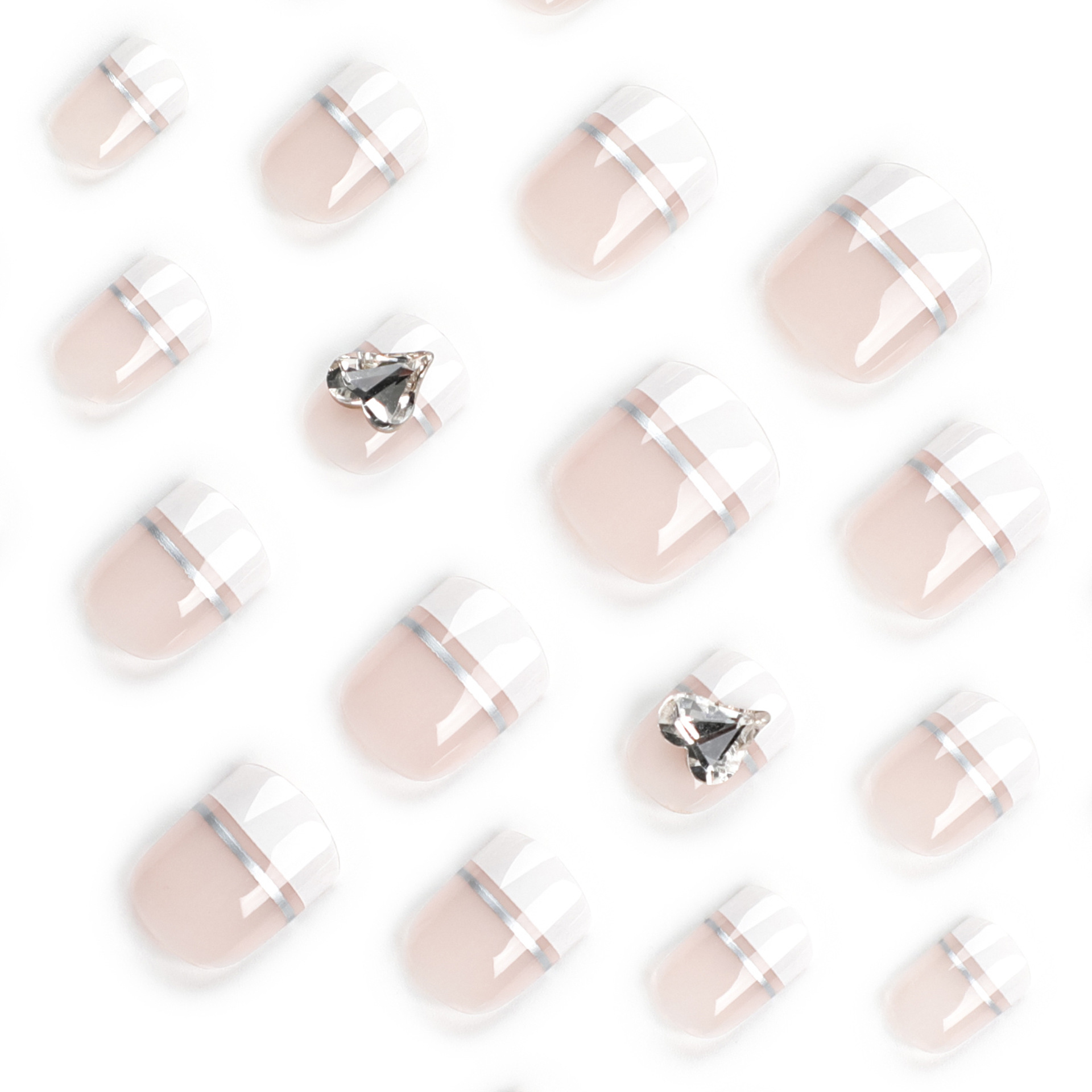 / 简约法式白色美甲爱心闪钻爆闪穿戴甲短款短方false nail甲片批发