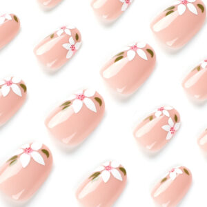 Wear nails short nude toenails white flowers green leaves nail art pieces wholesale fake nails press on nails
