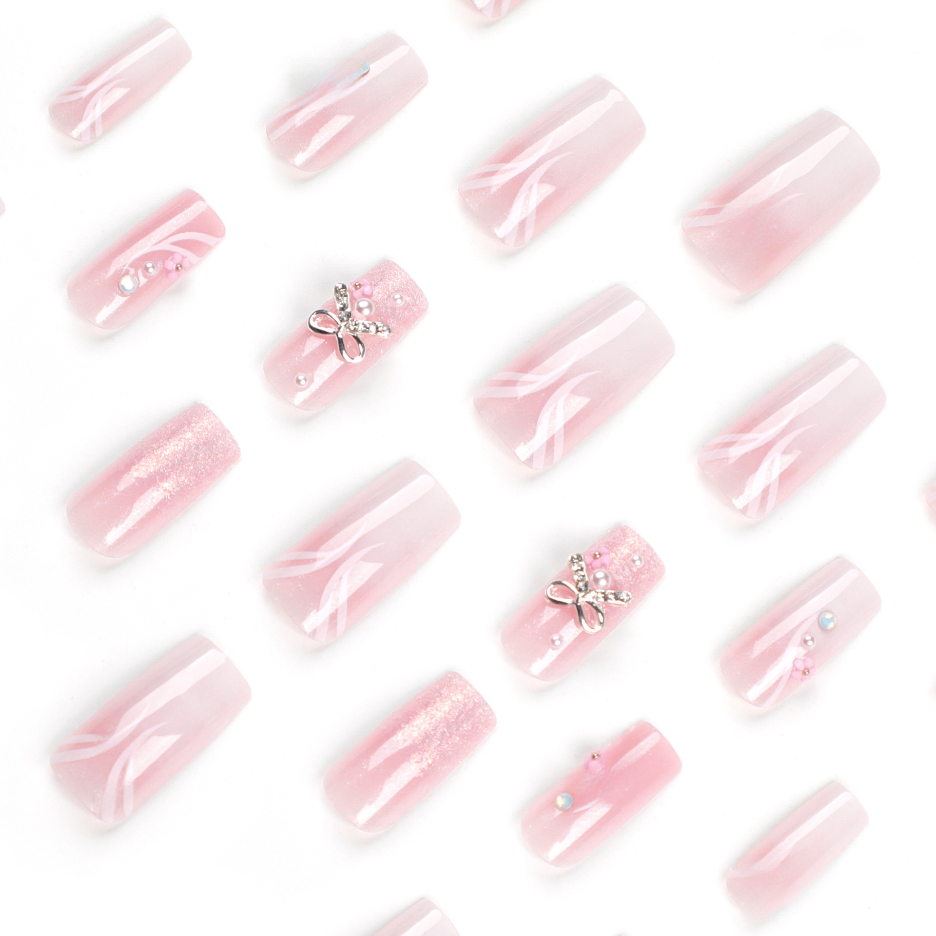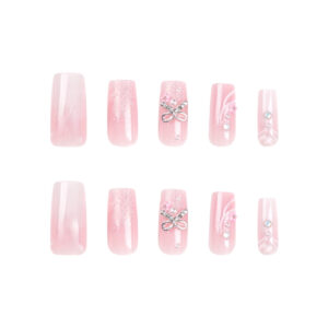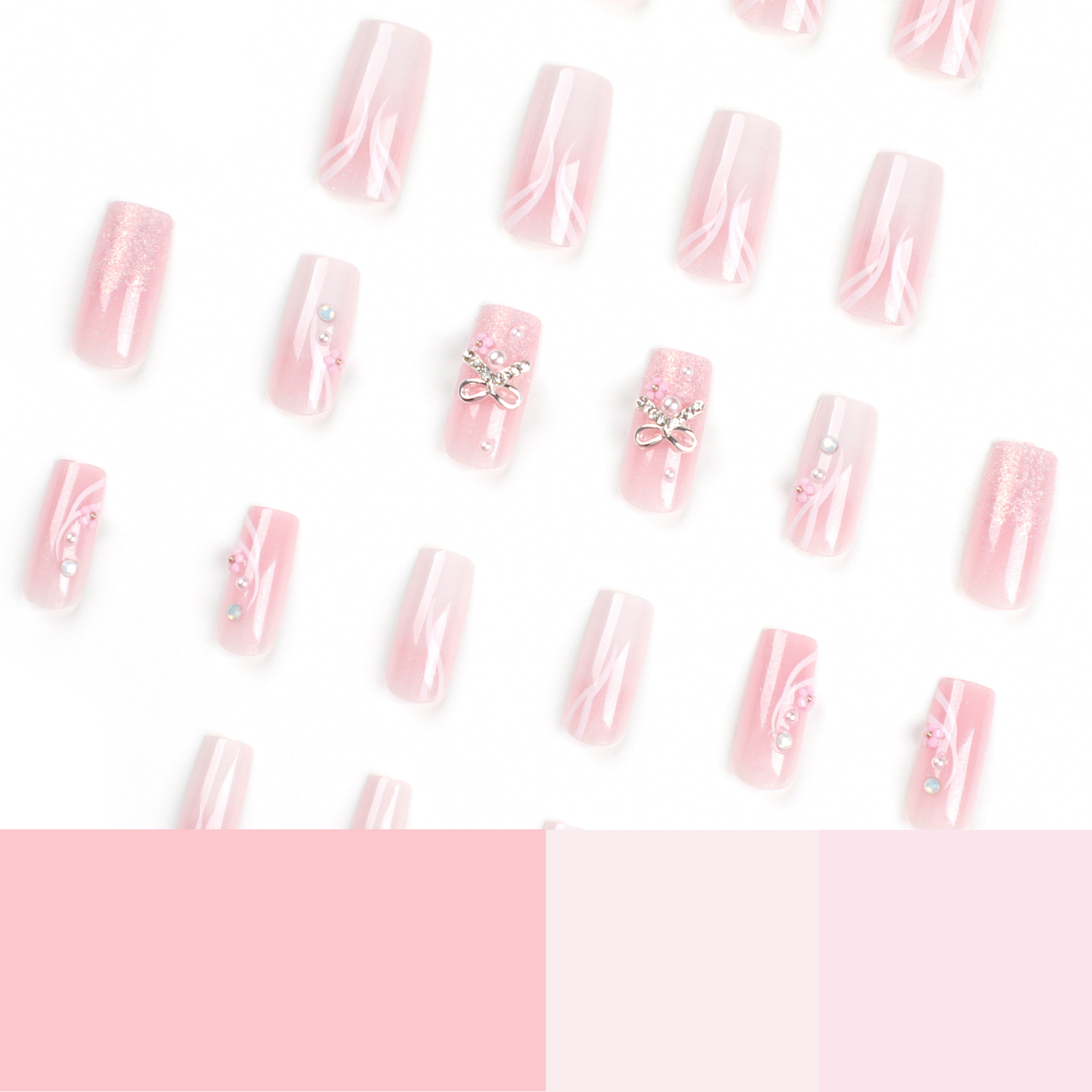 / 纯欲晕染美甲穿戴甲蝴蝶结闪粉假指甲指甲贴甲片中长款美甲片批发