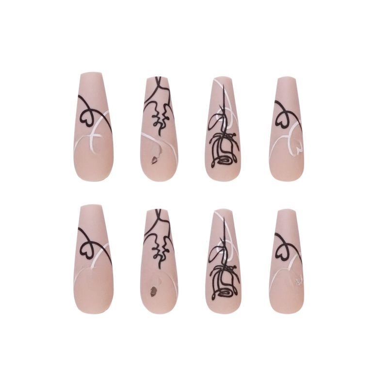 抽象线条艺术感穿戴美甲成品False nail美甲贴片指甲贴片可卸甲片