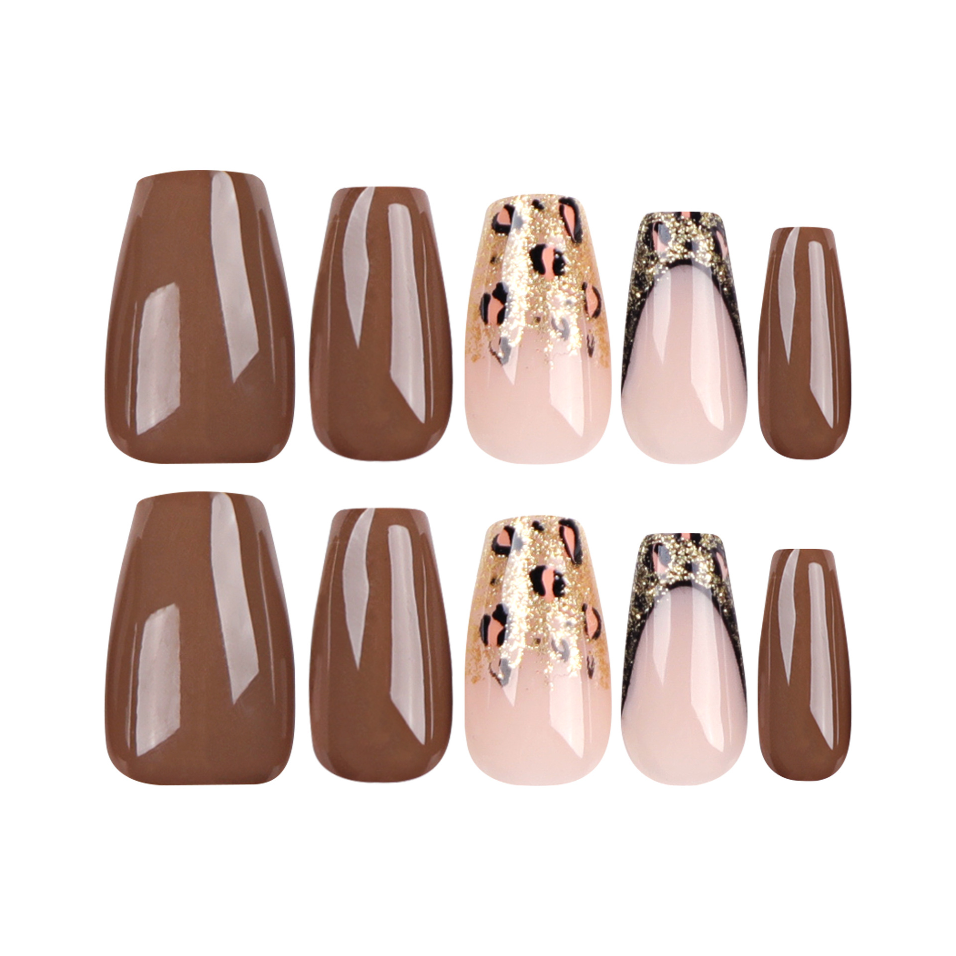 秋季棕色简约穿戴甲甲片金色闪粉豹纹美甲芭蕾型指美甲片指甲贴片秋季棕色简约穿戴甲甲片金色闪粉豹纹美甲芭蕾型指美甲片指甲贴片