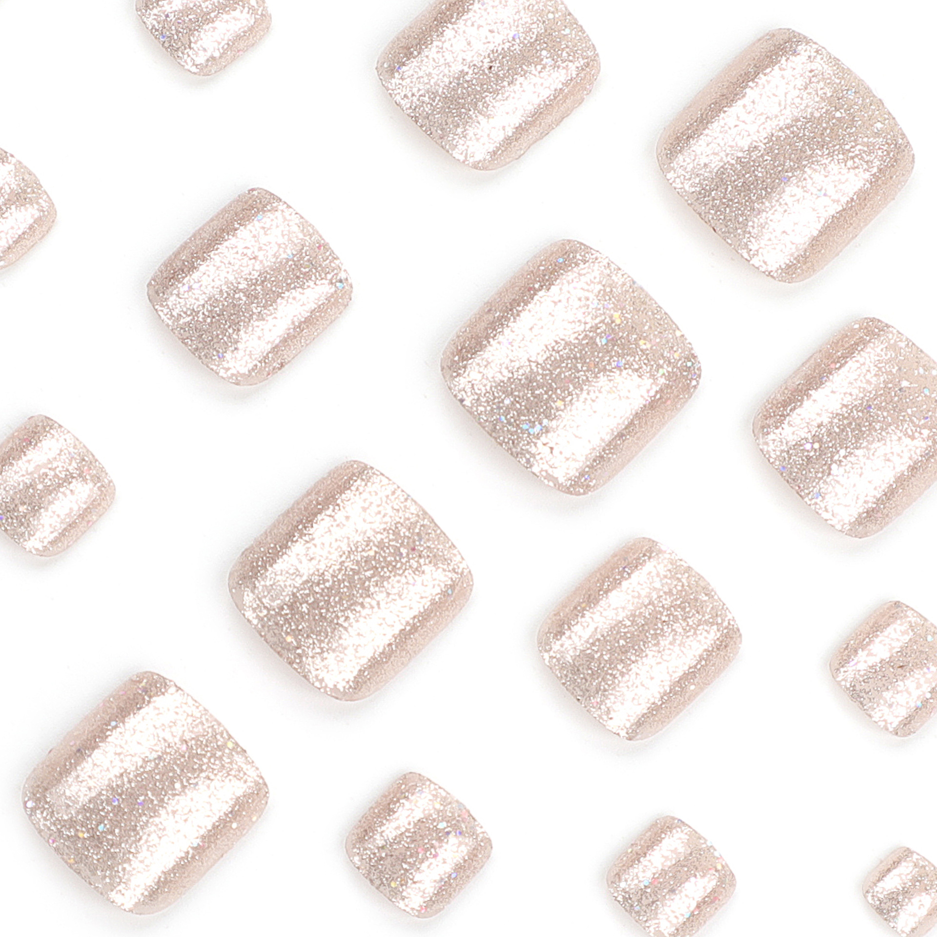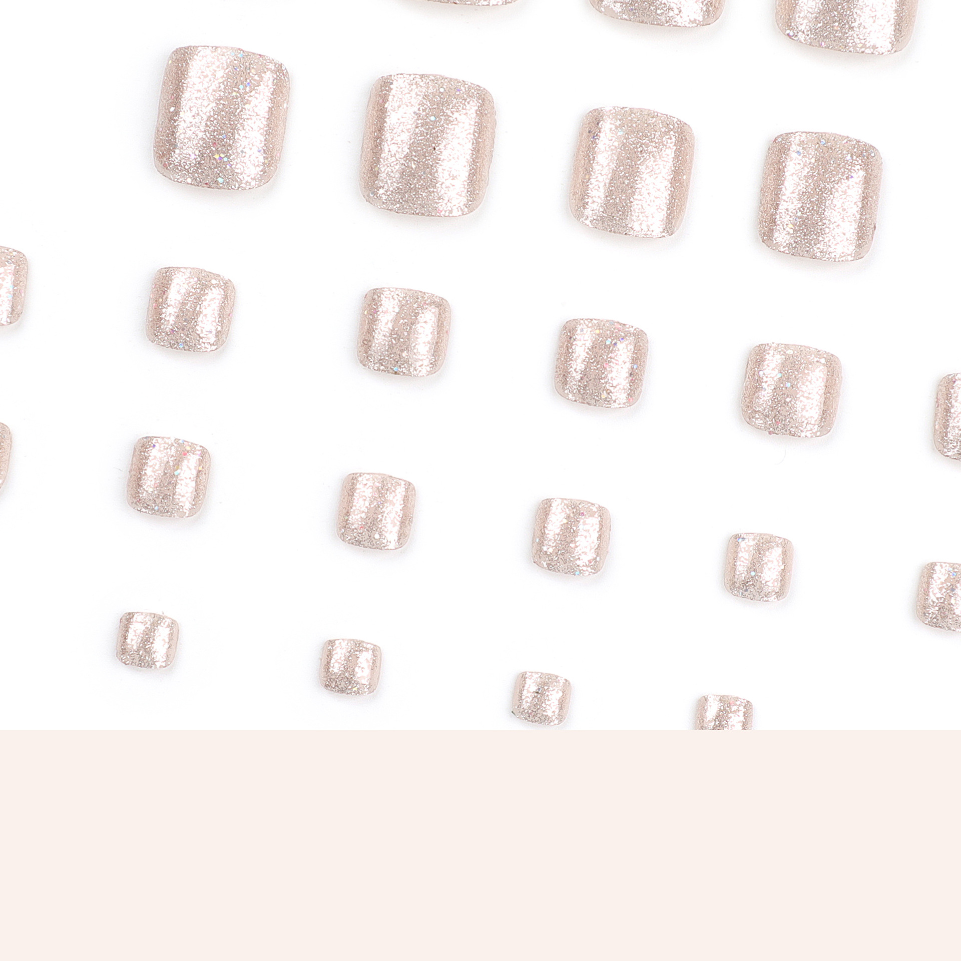 / 欧美跨境脚甲穿戴式脚趾甲片成品香槟色闪粉满粉显白美甲贴片批发