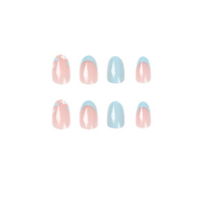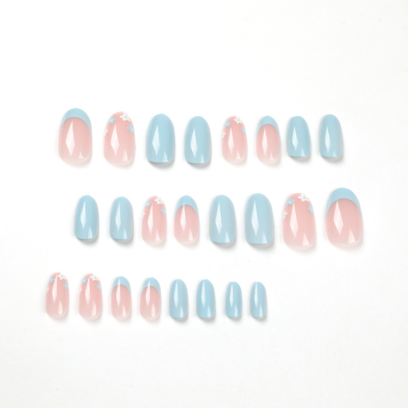 Fake Nail Pieces Wholesale Blue French Flower Nail Art Pieces Finished Removable Premium press on nail$0.00