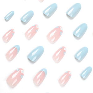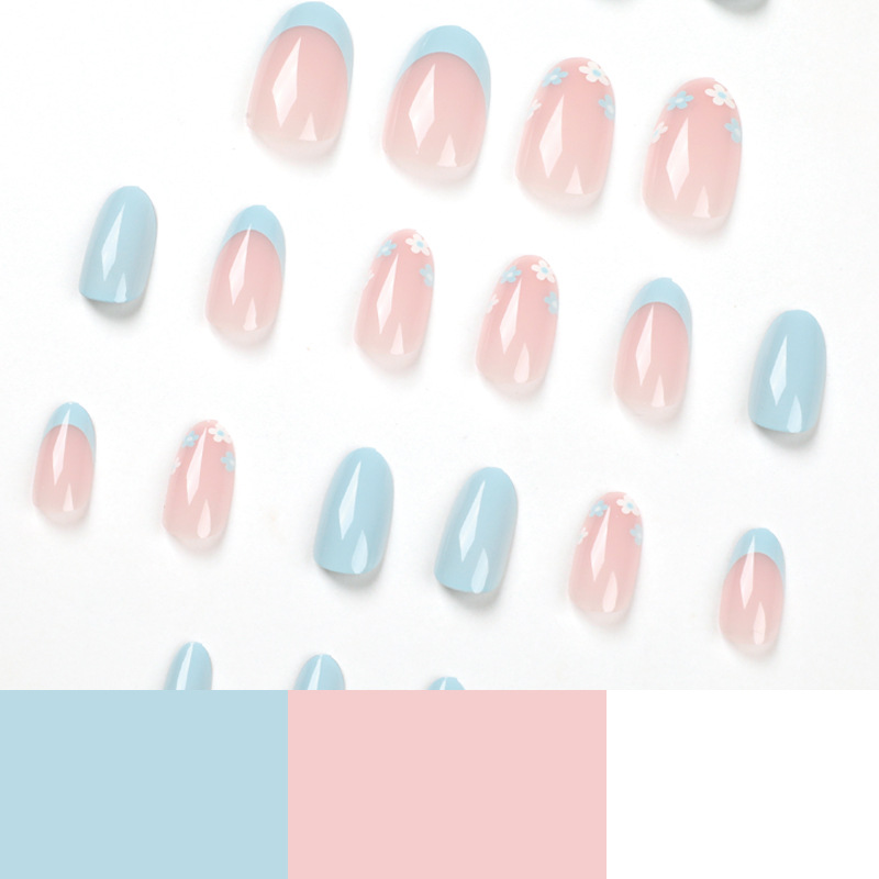 Fake Nail Pieces Wholesale Blue French Flower Nail Art Pieces Finished Removable Premium press on nailAvailability: 99 in stock