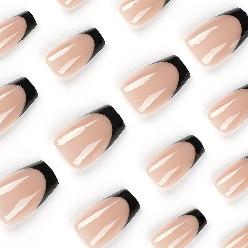 / 法式黑边美甲批发美中长款可拆卸甲片成品假指甲跨境穿戴甲批发