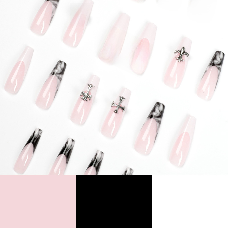 法式穿戴甲黑白晕染十字架长芭蕾甲片假指甲美甲甲片批发指甲片