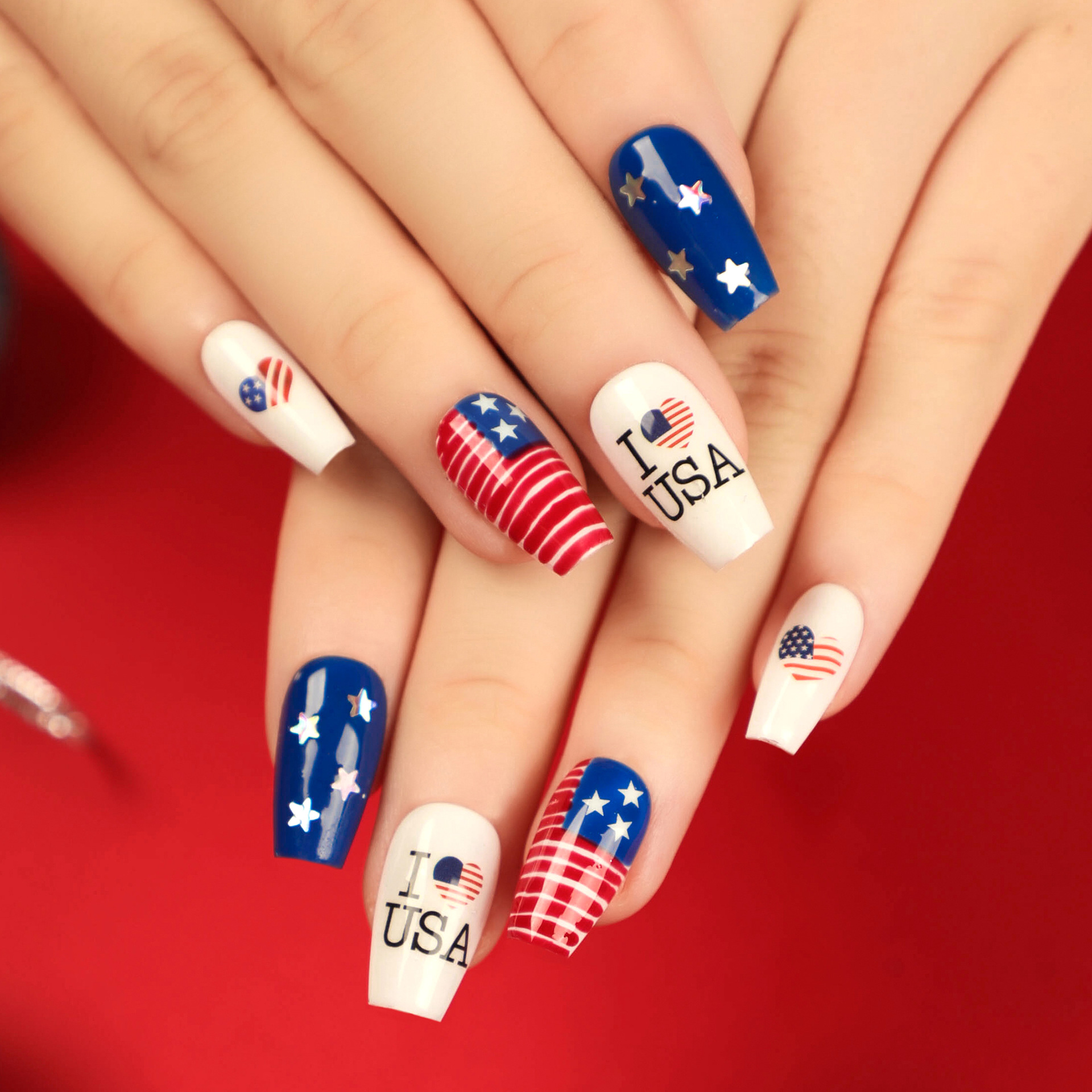 独立日假指甲指甲贴美甲片批发芭蕾甲穿戴甲可拆卸甲片成品nails独立日假指甲指甲贴美甲片批发芭蕾甲穿戴甲可拆卸甲片成品nails
