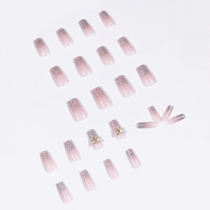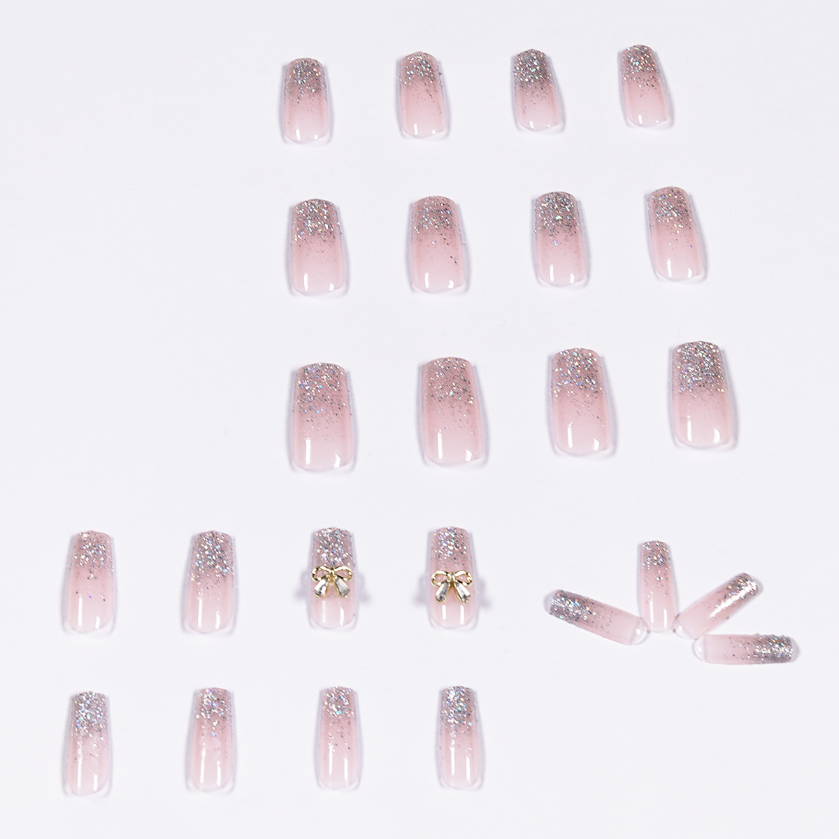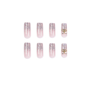 Fake Nail Wear Nail Art Finished Nude Pink Glitter Bow Tie Nail Patch Nail Patch Removable Nail Patch